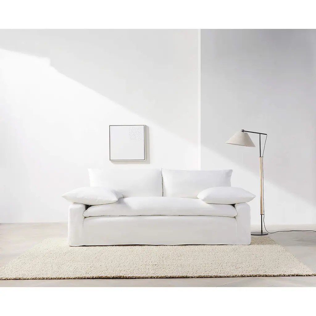 Ever at the ready for everyday life, this welcoming sofa exemplifies designer Leanne Ford's relaxed aesthetic. Floating a pillow seat on a broad bench backed with settle-in cushions, the sofa invites catnaps and family hangouts. The casual slipcover is made of a machine-washable and stain-repellent fabric that adds to the easy-living vibe. Designed for kicking back, Ever restores its company-ready looks with a quick fluff of the cushions and swipe of the "comfort wrinkles."