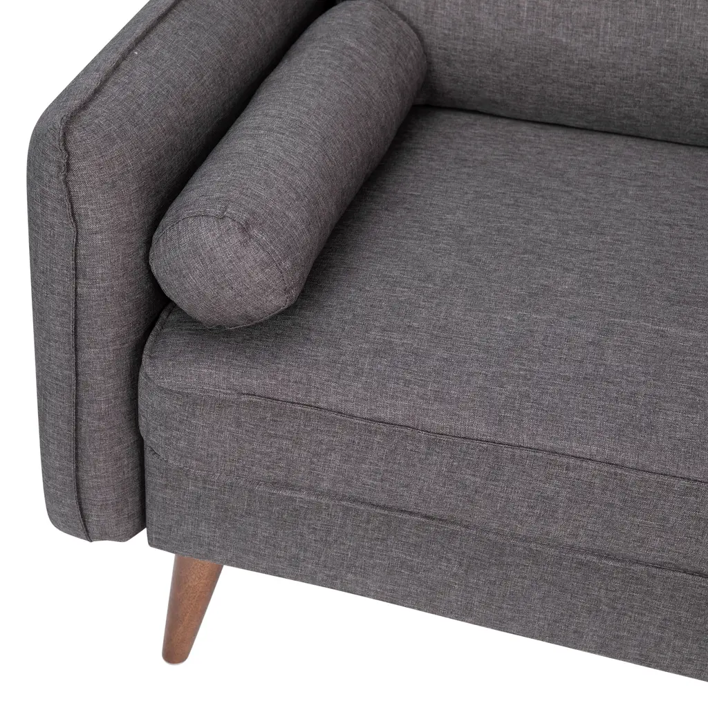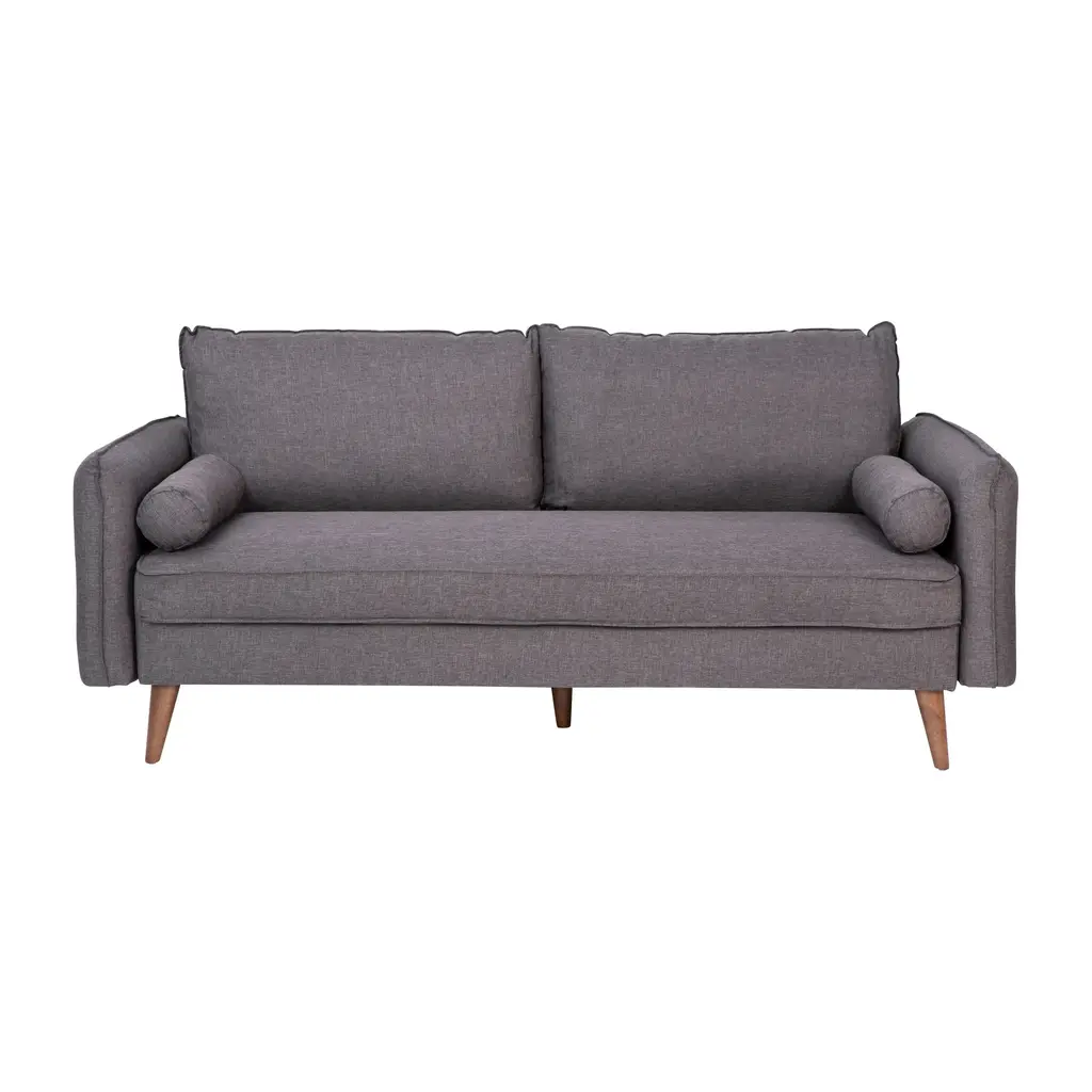 Yesterday's design meets today's materials in the trendy mid-century modern aesthetic of this compact sofa ideal for small spaces. Cozy faux linen upholstery covers this and gives any space an instant upgrade. Real wood legs and a solid wood frame allow this sofa to hold up to 800 lbs static weight while generous foam padding atop the pocket springs adds an extra supportive feel. Fixed floor glides prevent damage to your hard flooring surfaces and the attached seat cushion keeps your space tidy. The twin back cushions are removable for fluffing or to catch a quick nap. Tool-free assembly takes less than 10 minutes for quick and easy setup and a damp cloth is all it takes to keep it looking new. This on-trend seating arrives in a single box and pairs with other pieces in our collection to complete the look of your living room, family room, or bedroom.