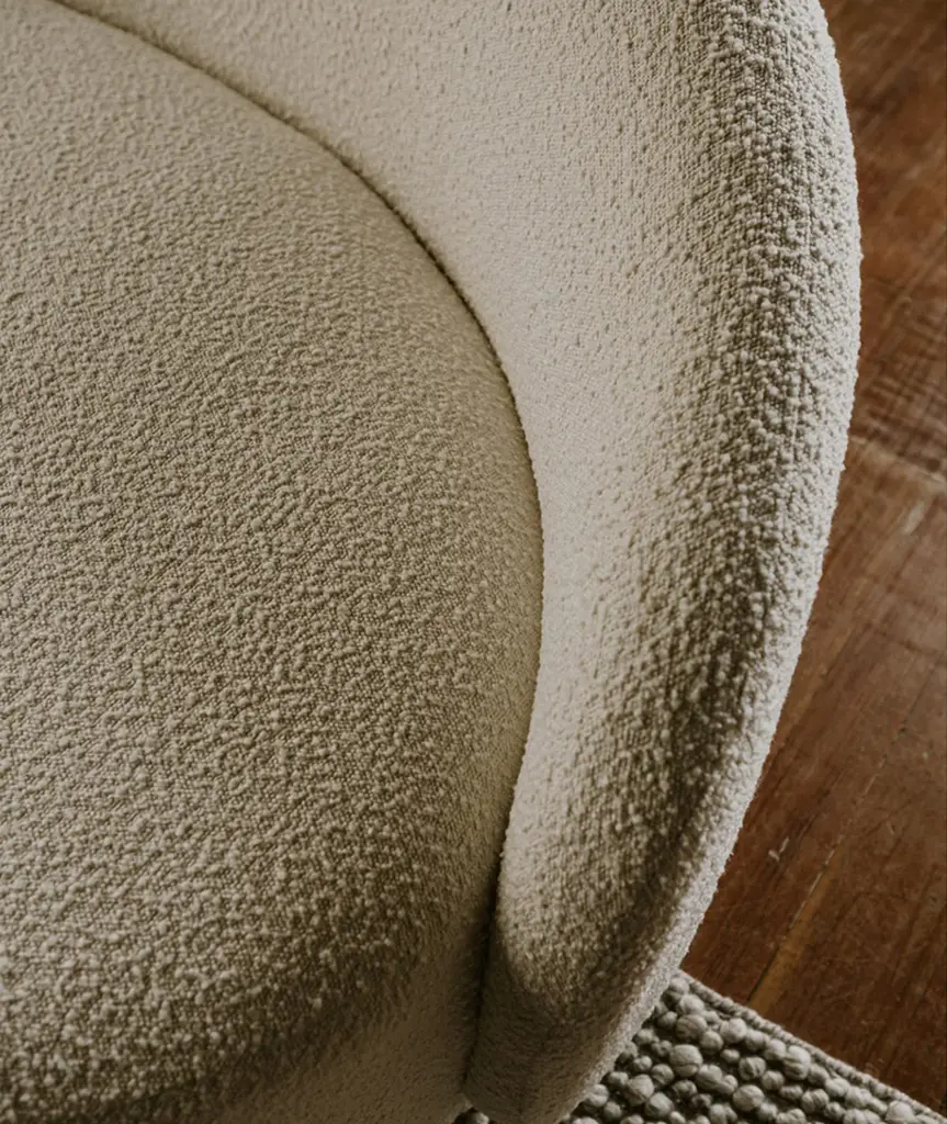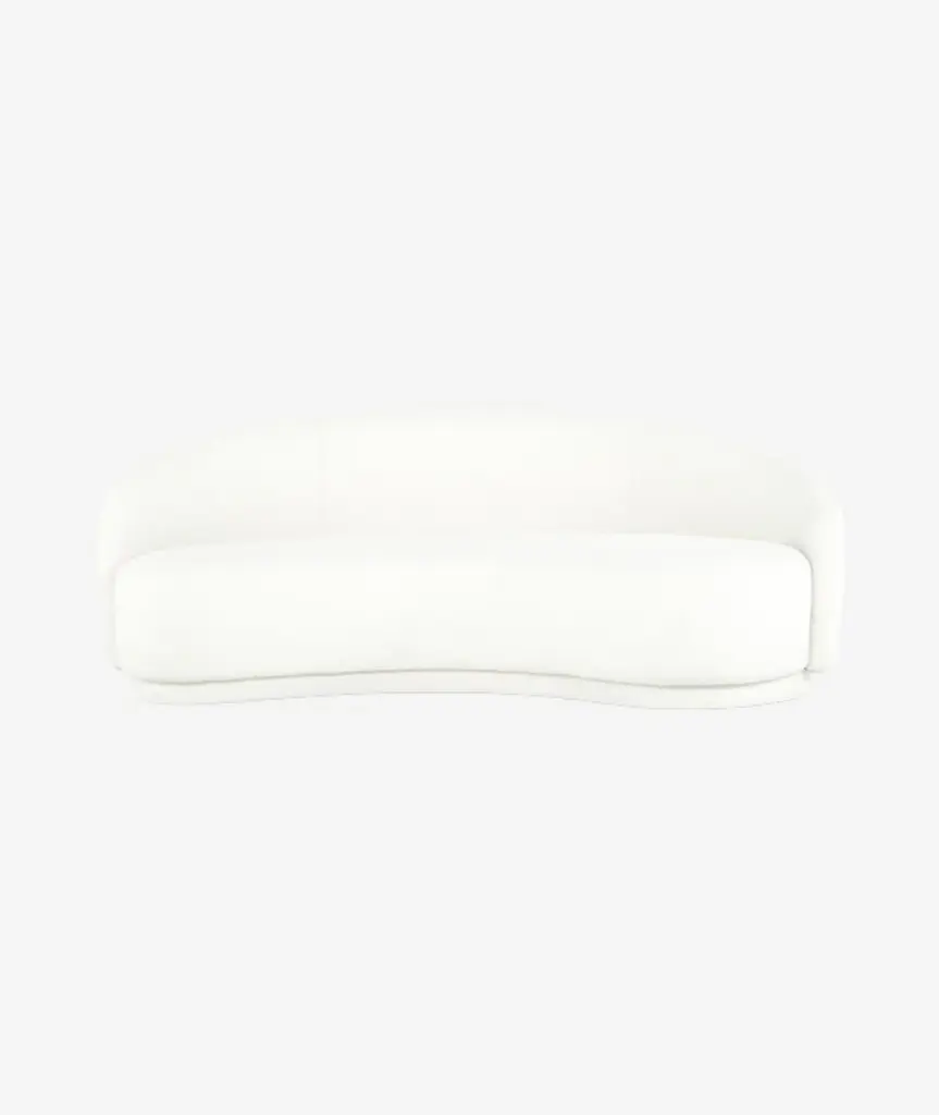 A beautiful introduction to boucle, the Excelsior sofa is an exquisite embodiment of serenity and sophistication. Designed to comfortably accommodate four, this generously proportioned sofa features a gracefully curved silhouette that epitomizes effortless elegance. This piece is pure comfort and style, evoking an experience of tranquility and relaxation, redefining the interior landscape with refinement and unparalleled softness.