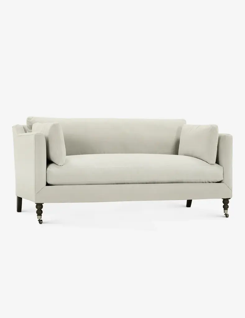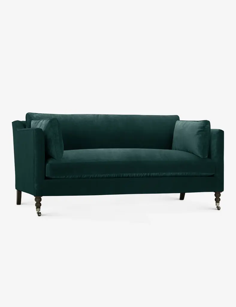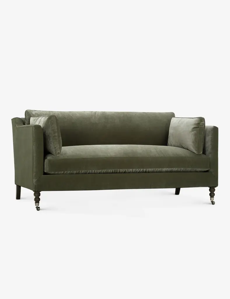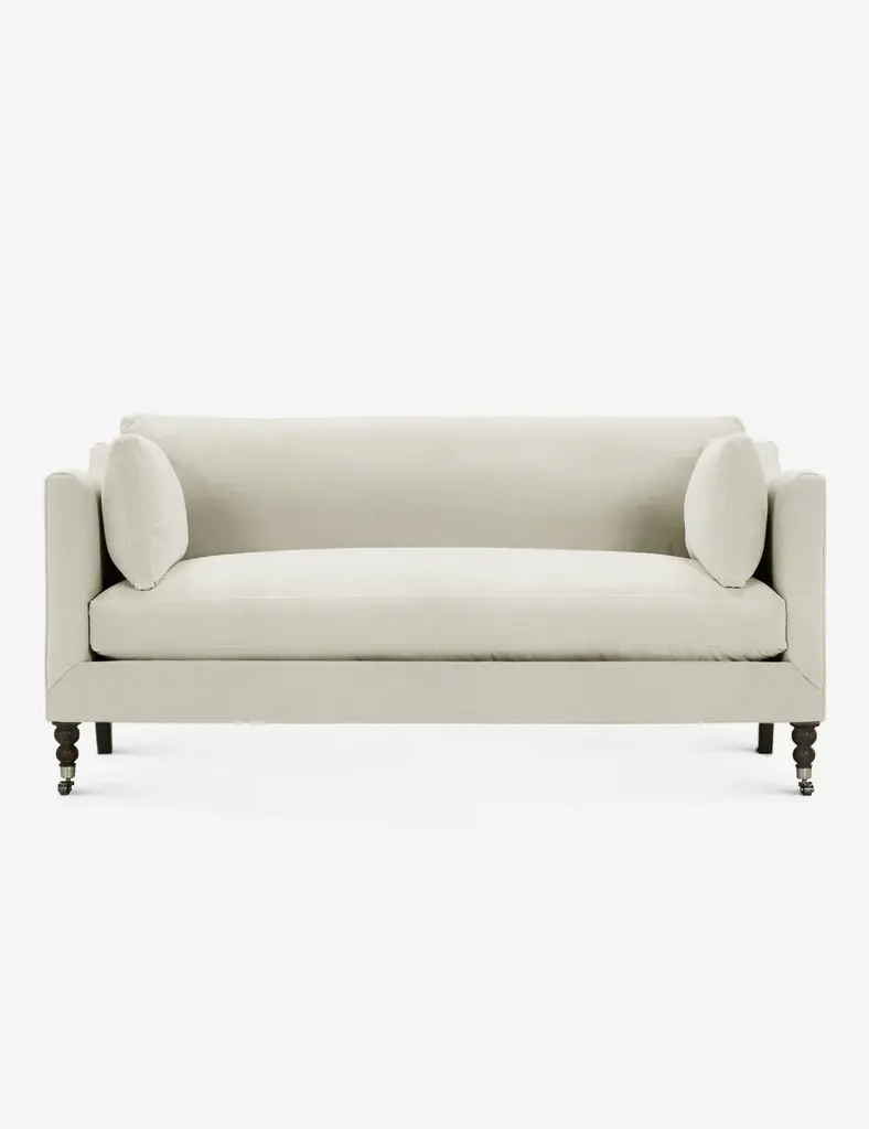 Add a touch of vintage flair to your living room or office with the Fabienne sofa. Antique meets traditional with the tailored upholstery and ornate legs of this plush sofa. This sofa is finished with small front wheels to ease movement.