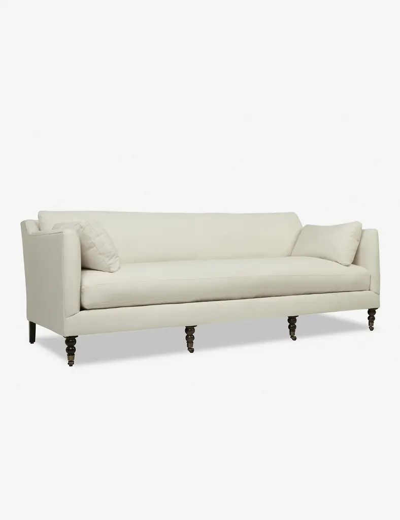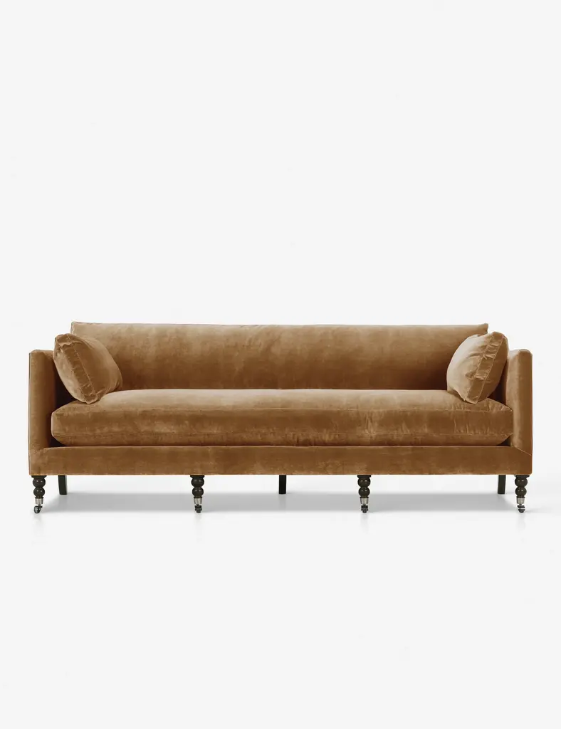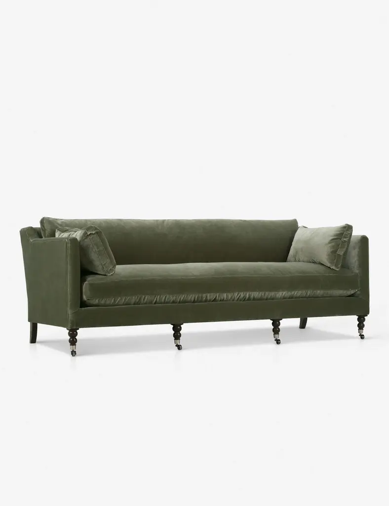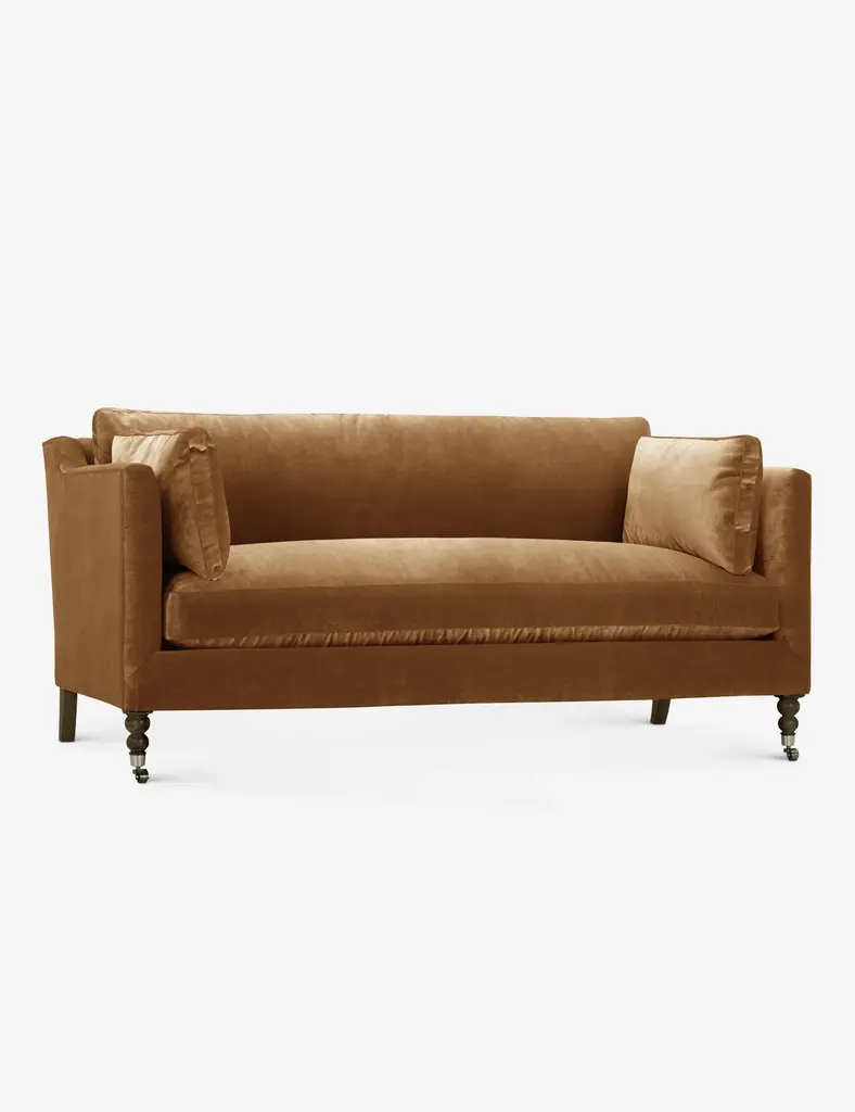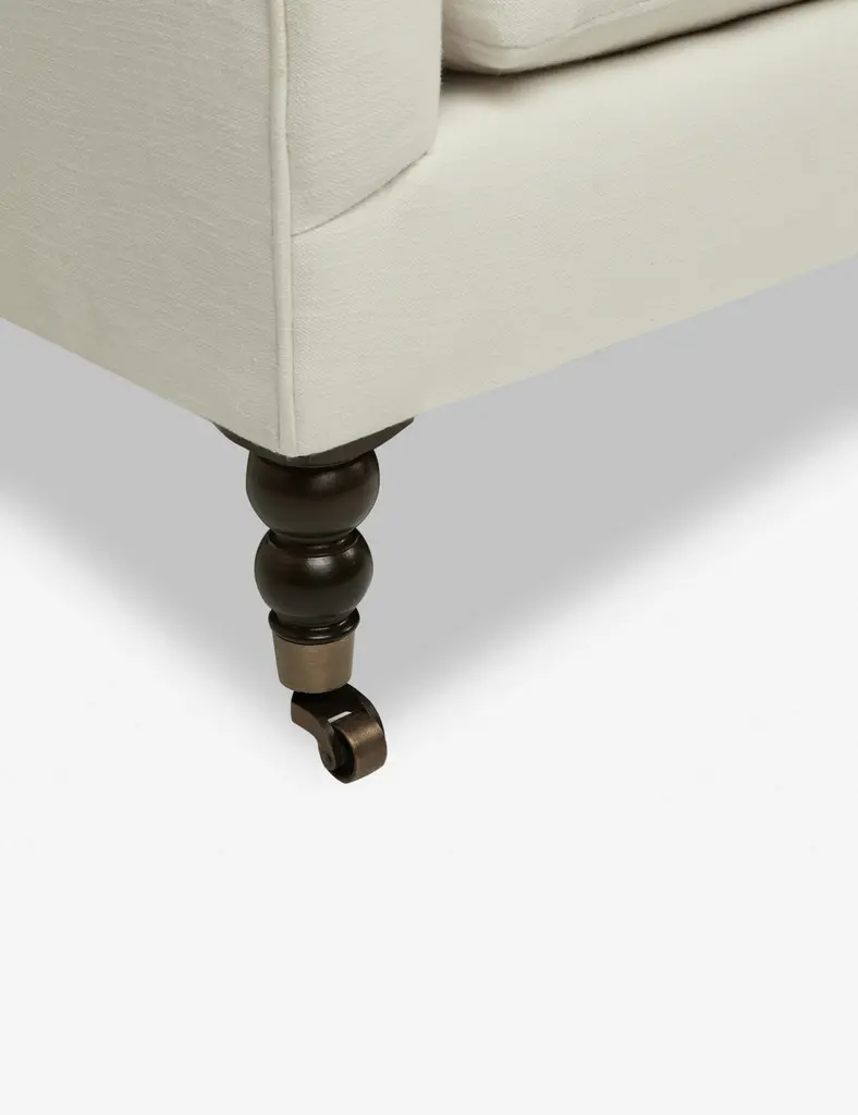 Add a touch of vintage flair to your living room or office with the Fabienne sofa. Antique meets traditional with the tailored upholstery and ornate legs of this plush sofa. This sofa is finished with small front wheels to ease movement.