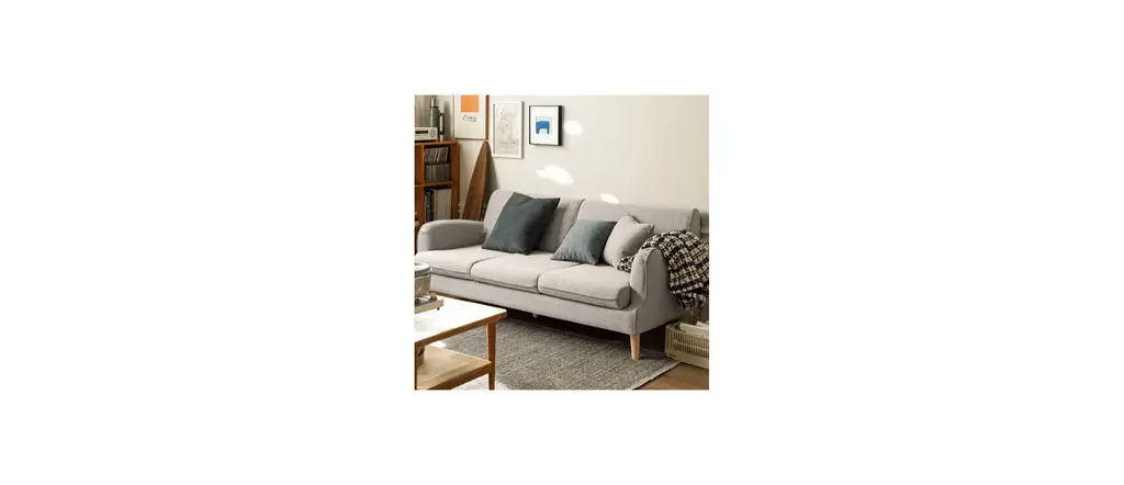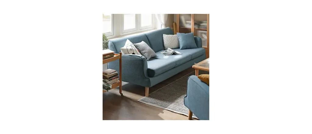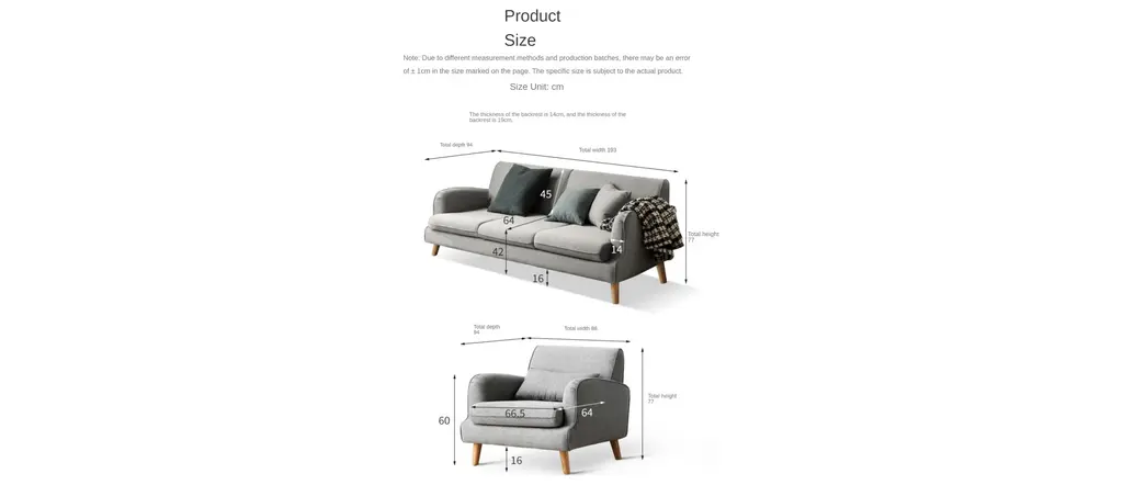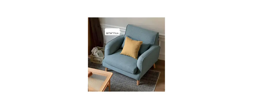 Cotton polyester blended fabric, delicate, heat resistance, environmental protection, no color loss (removable and washable! The inner frame of the sofa is larch + S-shaped spring, sofa legs are made of ash wood