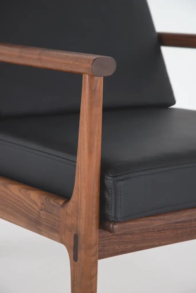 The Fahmida Sofa – Two Place celebrates contemporary design, the natural beauty of wood, and traditional joinery techniques that are a hallmark of all Thos. Moser furniture. The sofa was adapted from the Fahmida chair, designed by Fahmida Lam in collaboration between Dwell, City Modern New York, and Thos. Moser.