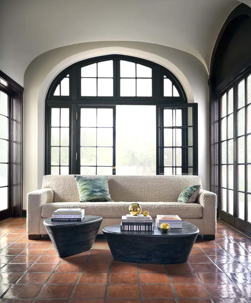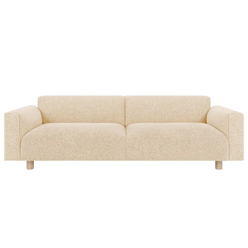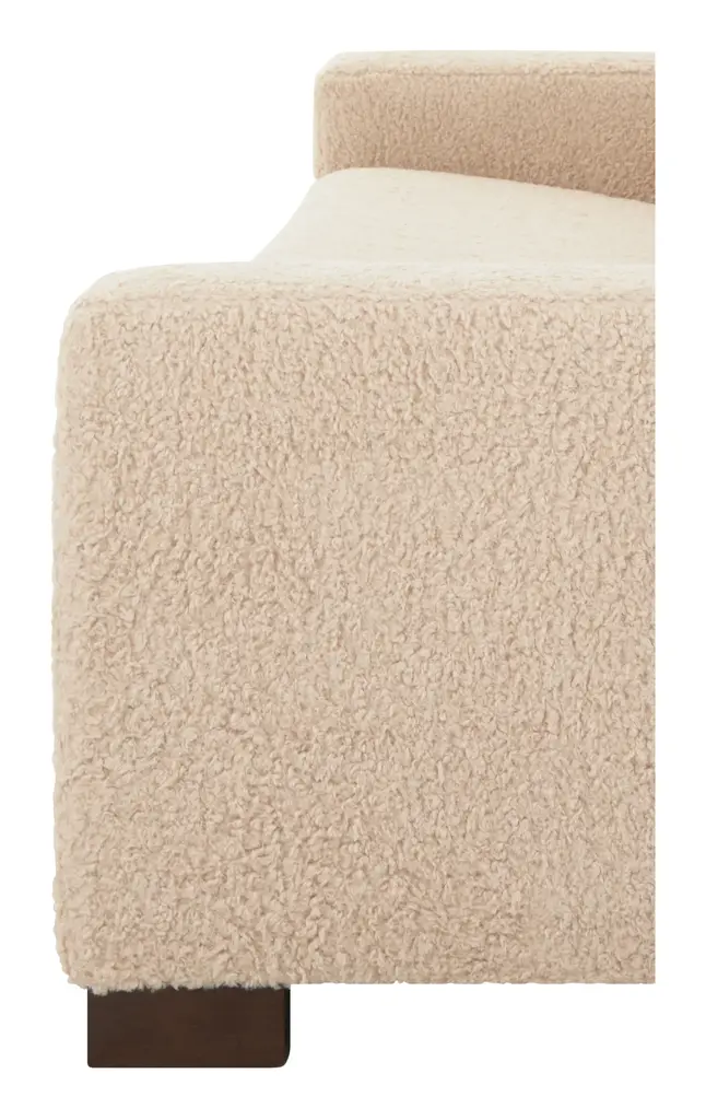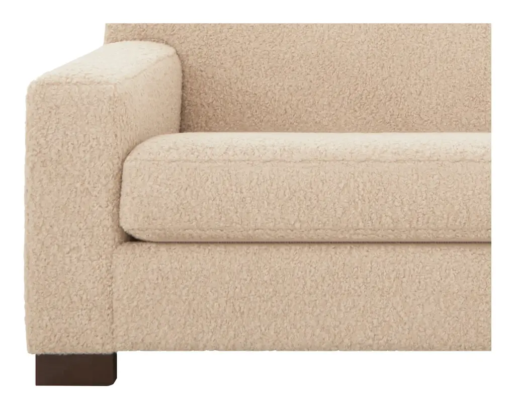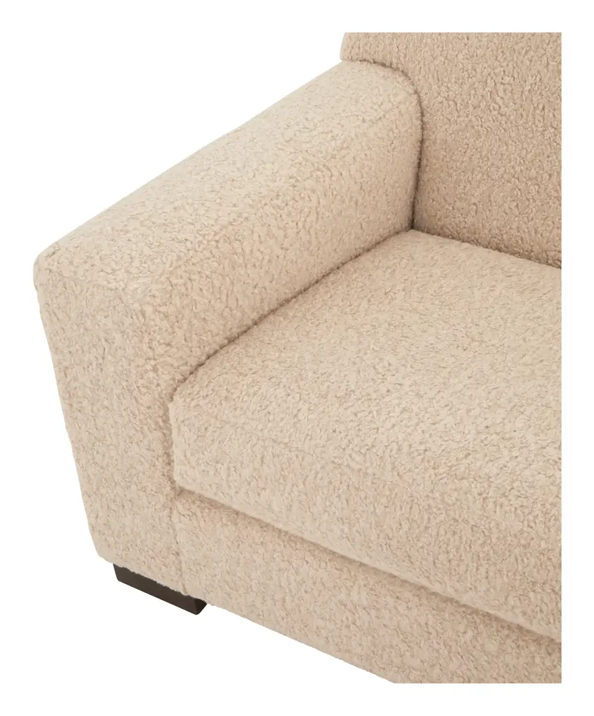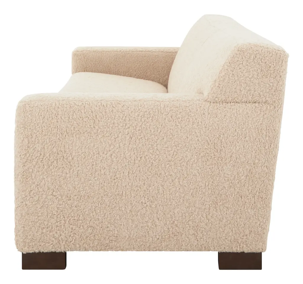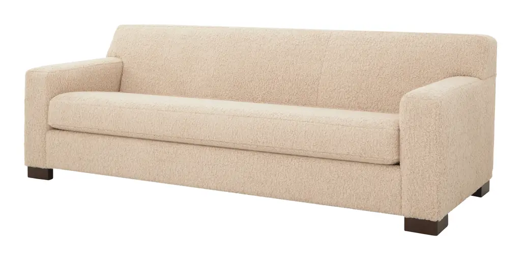 Our lounge-friendly Farley Sofa is just the kind of seat you want waiting for you at the end of the day. Simple and classic in design, this streamlined sofa pairs a well-proportioned silhouette with a plush yet supportive bench seat, a firm, slightly pitched back and perfectly placed arm rests to create a comfortably upright (and totally irresistible) sit. Great in a casual modern living room for afternoon naps or movie nights with the family, we also love Farley piled with luxe pillows in a more sophisticated study or sitting room. As Shown•upholstered in telluride champagne faux shearling•fabric content: 100% polyester•walnut wood finish•sustainable construction•custom options available •made in the USADimensions•96"W x 38"D x 32"H•arm height: 24"•seat width: 81"•seat depth: 22"•seat height: 17"