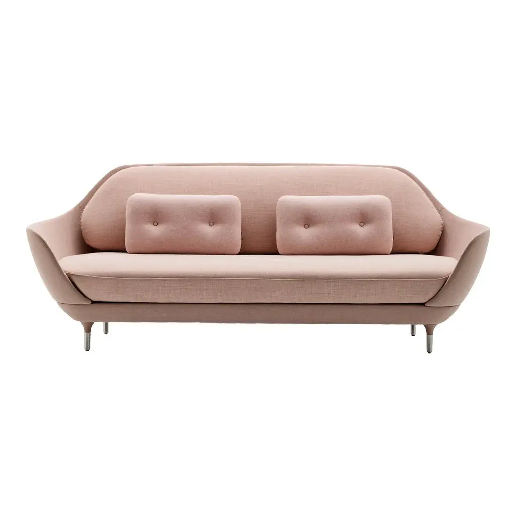 FAVN, the Danish translation for embrace, is designed with great attention to detail and consist of only a few elements. "I wanted to create a form that embraces you, something really organic, that's why we named it FAVN, says Jaime Hayon. It is an evolution of Fritz Hansen's design language that brings together the qualities of Spanish and Danish design. The work of the artist-designer is characterized by his respect for colours, craftsmanship and techniques. The large rounded shell rests on the small, but elegant legs while the seat and back together with the decorative cushions combined with the use of three textures, makes up the strong visual layers. As the sofa has no edges - it is round and soft. "I wanted the sofa to be based on a shell. A shell, being hard on the outside, soft and welcoming on the inside. Protective and warm." Decorative pillows sold seperately. Please contact us to order.