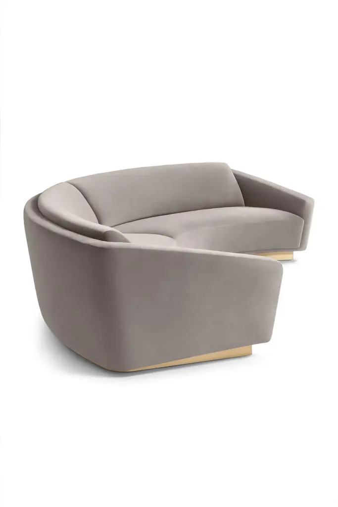Ferdinand 350 Sofa by MunnaDimensions: D 185 x W 350 x H 80 cm. SH: 41 cm.Materials: Wood, foam, brass, and upholstery.Finish: Cotton Velvet, ref. Light Grey, CV16, and brushed brass.Available in all Munna fabrics except Wild Silk. Available in client’s own material. Footer is available in brass, nickel, or copper, in polished or brushed finishes; or in rosewood, ebony, walnut, wengé stain, or lacquer in all RAL colors. Handmade in Porto. Please contact us.Established in Porto in 2008, Munna is a furniture design brand renowned for creating handmade upholstery with unmatched craftsmanship, seamlessly blending noble materials and timeless design, for both commercial and residential projects.Made by hand in Porto, Munna’s pieces honor the profound heritage of craftsmanship, while drawing inspiration from history’s most influential artistic periods. Munna’s pieces are made of the finest fabrics such as cotton velvet, twill, leather, and silk; the finest wood veneers, such as ebony, walnut, and rosewood; sumptuous gold, silver, and copper leaves, metal details in brass, nickel, and copper, and superior lacquers.