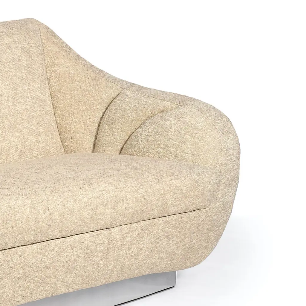 Located in the sunny California, the charming Figueroa Mountain is a magical landscape that led to the creation of the Figueroa sofa.The long curves of the mountain were taken to the sofa’s exterior and the mountainside ripples were placed on the inside. The top of the sofa features the great bow of the skyline and both fabric and stainless steel base reunite in the soft curves that go all around this compact creation. Just like the mountain meets the land.Handcrafted by a very talented team of Portuguese furniture artisans, this imposing sofa adds quality and tradition to the most luxurious interior design projects.Product detailsUpholstery: the price shown refers to the piece without any fabric (the client must provide it). If you're looking for the price of the piece with the fabric shown on the image, please search the product name without the "COM".Base: handcrafted in brushed stainless steel with gloss finish.COM: 9m 353,92 in. (Standard width 140cm 55in.)Product optionsUpholstery: Client's Own Material.Base: brushed, oxidized brushed or aged brushed brass/copper/steel.Weight95Kg 209,5 lbsMade to order. Custom sizes and other finishes are available under request.Designed by Joana Santos Barbosa, 2016. Handmade in Portugal.