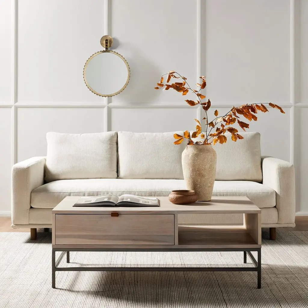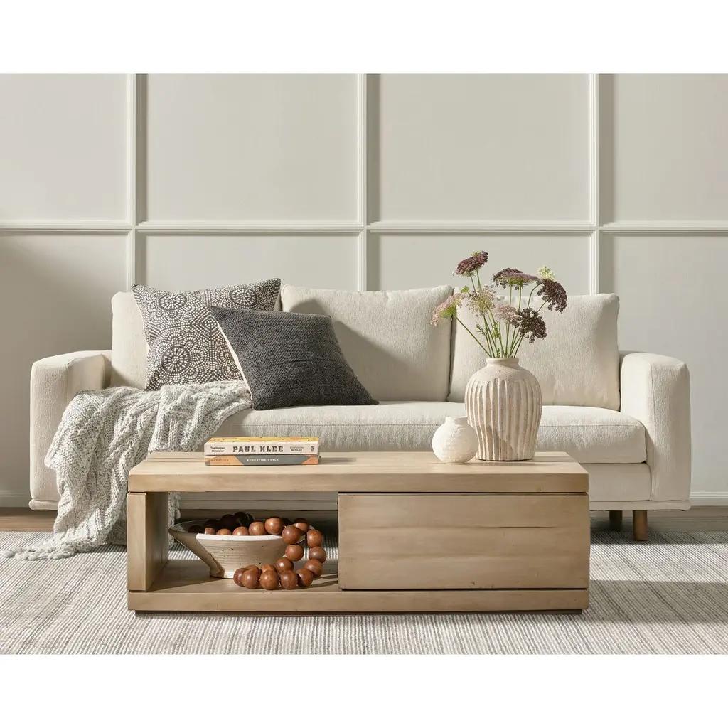 This timelessly stylish track-arm sofa will maintain its good looks for years to come, thanks to its stain-resistant performance-fabric upholstery; with a rub rate of 30,000, it's designed to withstand daily use. S-spring seat construction and generous cushioning ensure that the sofa is as comfortable as it is handsome.