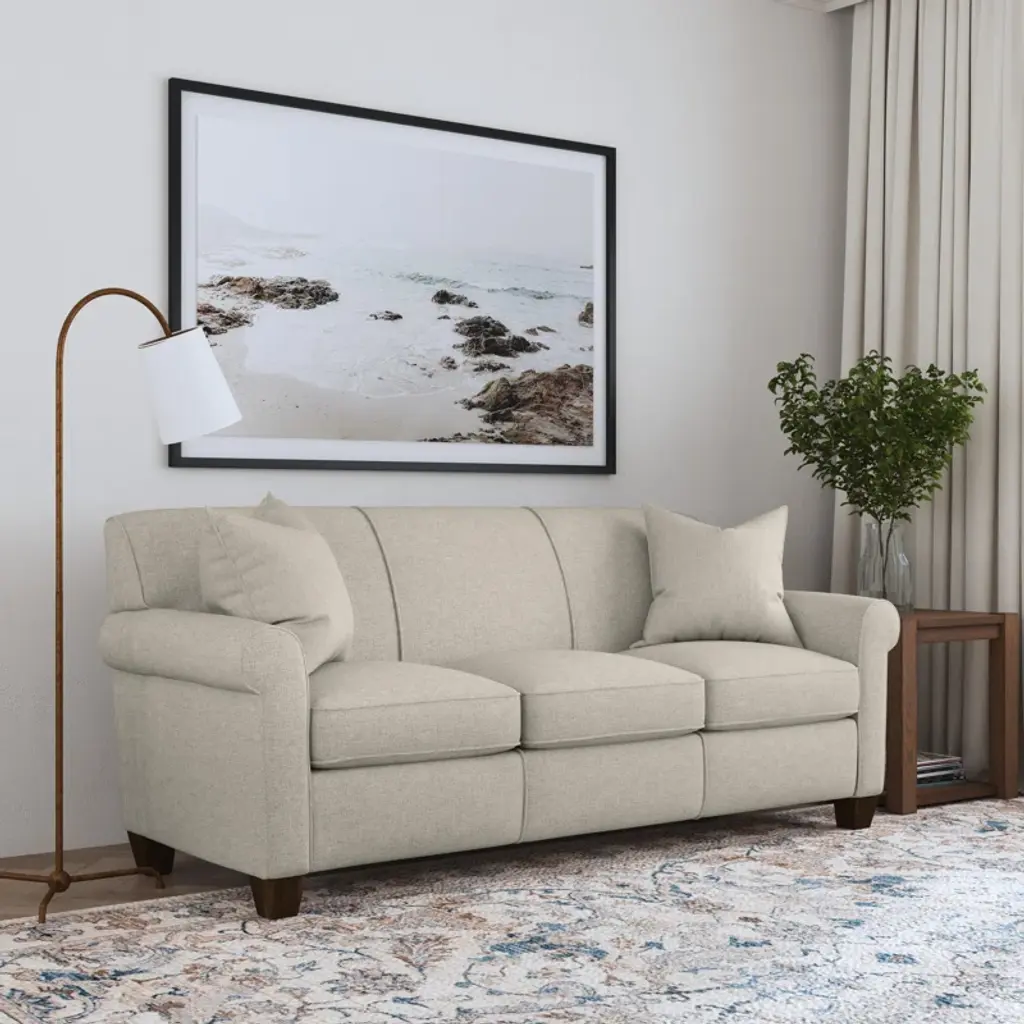 Finnian is current and stylish, yet simple enough to withstand the test of time. This modestly scaled style is a great option for small spaces. With a tightly padded back, tailored roll arms, and tall tapered feet, Finnian fits classic touches into a streamlined design that lends openness to any space.
