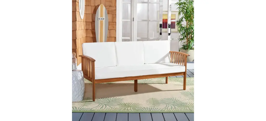 A modern update of a classic silhouette, this Finnick outdoor sofa takes inspiration from 1920s garden decor. Finnick's thoroughly contemporary natural finish and plush cushions ensures it remains a style icon for years to come.
