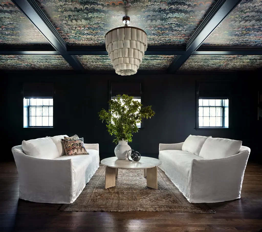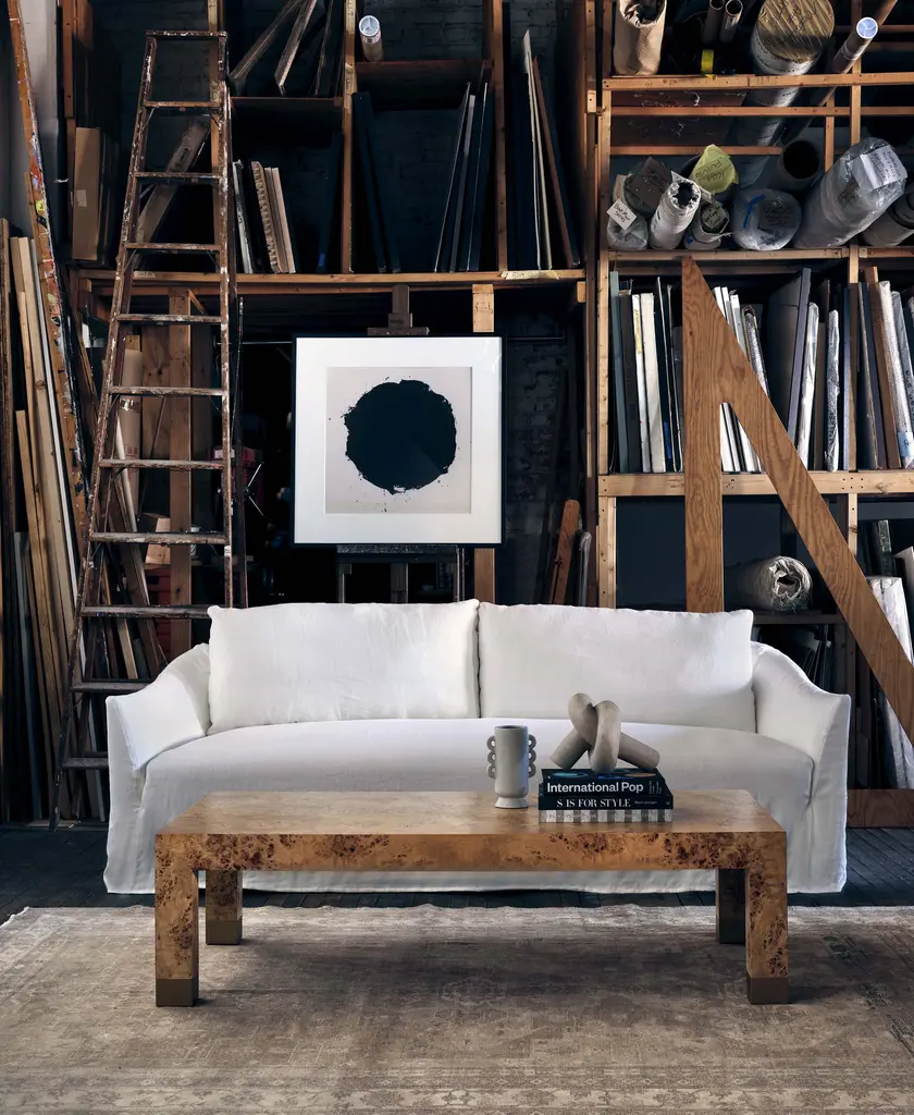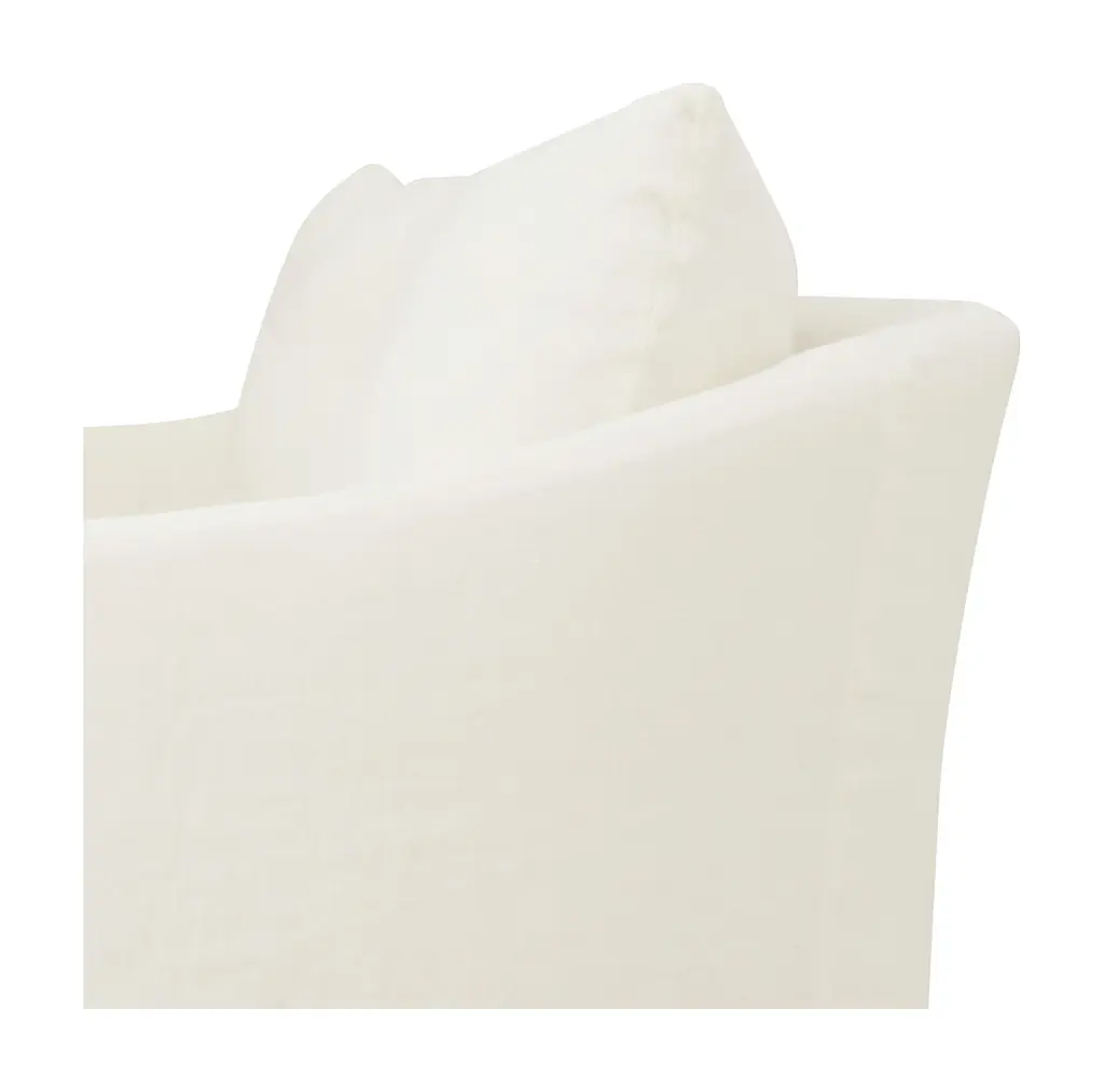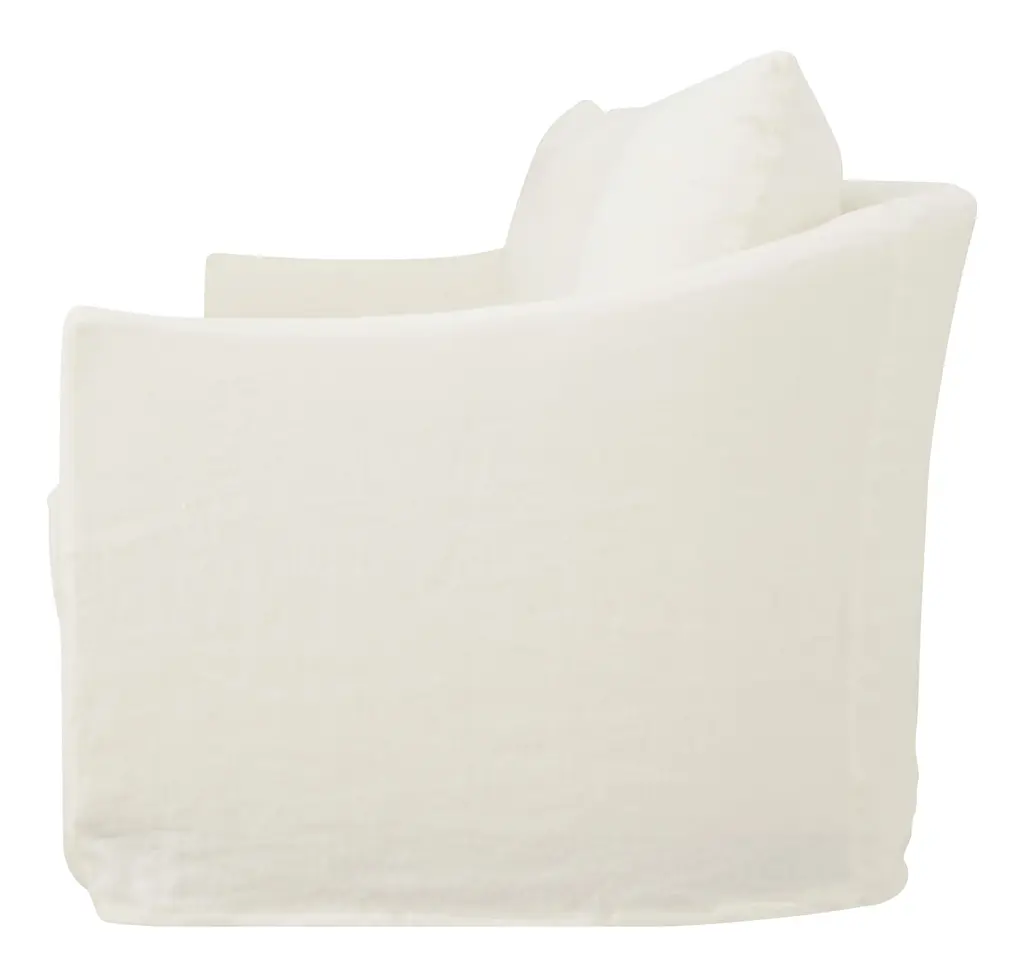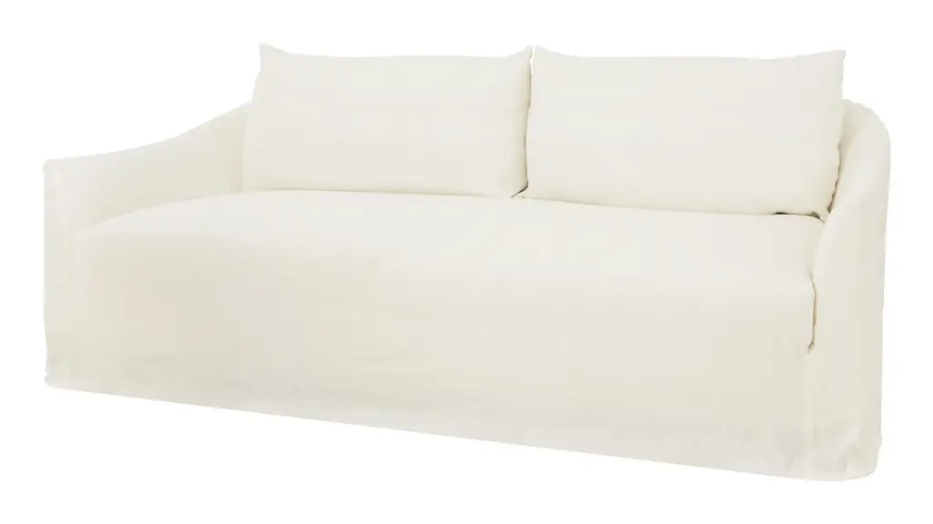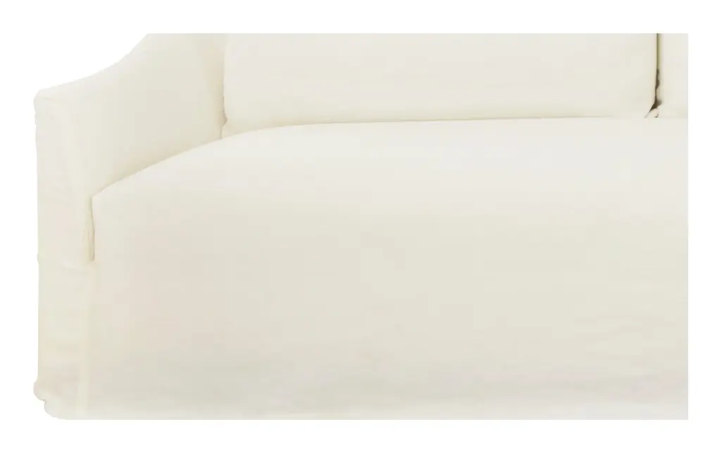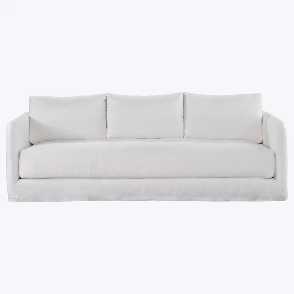 Kick back in classic style with our effortlessly sophisticated Fitz Sofa. Simple in design, this vintage-inspired sofa pairs a deep, sink-in bench seat with two plush back cushions and sheltering sloped track armrests for an unbelievably comfortable sit. All of this is covered by a neatly-tailored slipcover, which adds to its elegant yet laid-back feel. The perfect spot to unwind, our inviting Fitz Sofa would be right at home in just about any space, from a cozy, welcoming living room to a more traditional sitting room. As Shown •slipcovered in creme linen•fabric content: 100% linen•sustainable construction•includes down and feather cushion upgrade•custom options available •made in the USA Dimensions •95"W x 40"D x 38"H•arm height: 24"•seat width: 84"•seat depth: 24"•seat height: 18" COM yardage needed is 13 yards. If using a patterned fabric please contact us at info@jaysonhome.com or 1-800-472-1885 for yardage requirements.