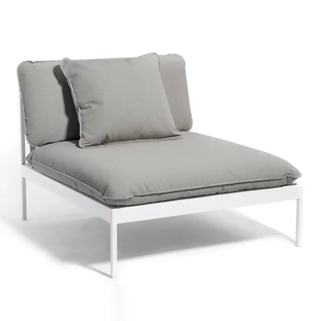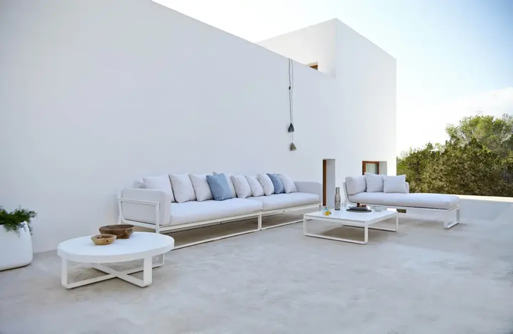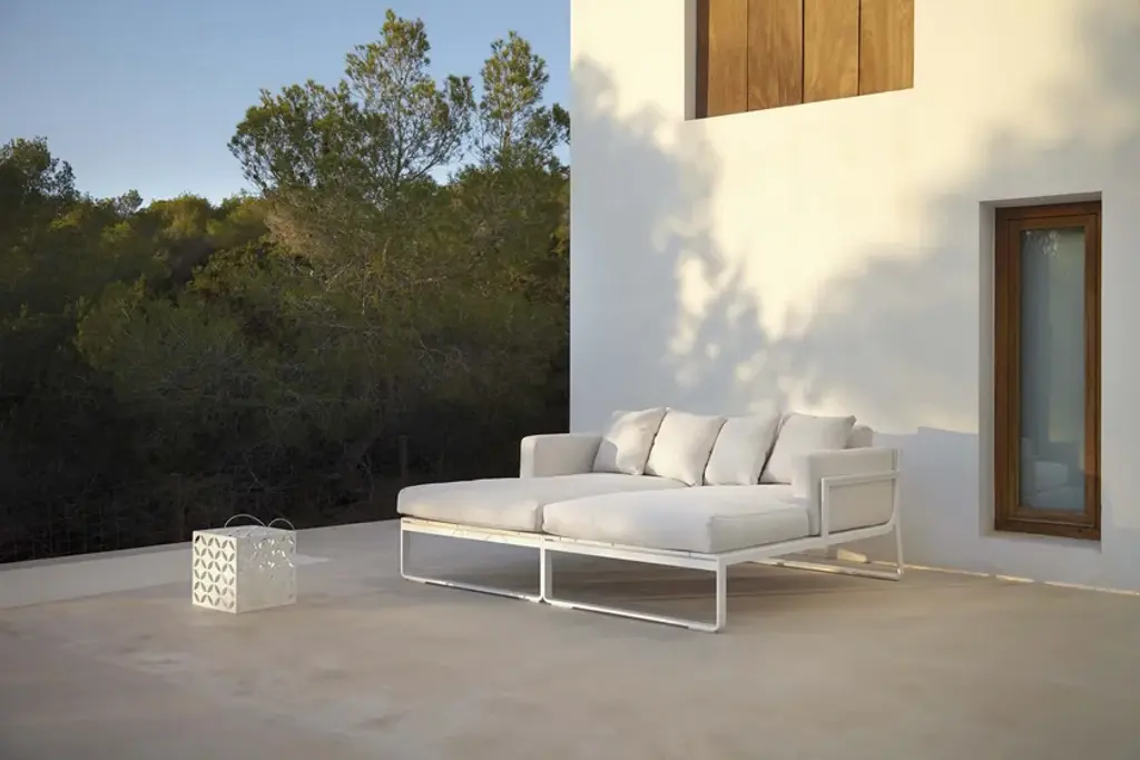 "Flat is a collection of outdoor furniture that we designed for GANDIABLASCO in 2008. Twelve years on, it has been so successful that we’ve continued designing new items. It’s a well-balanced and flexible collection; an essentially formal concept with a light and airy structure in which fabric plays an important part."Made of thermo-lacquered aluminium profiles and 100% recyclable polyethylene. Polyurethane foam rubber covered with water-repellent fabric. Removable fabric cover.Collections colour sample: white, agate grey, cement grey, sand, bronze, blue grey and anthracite.