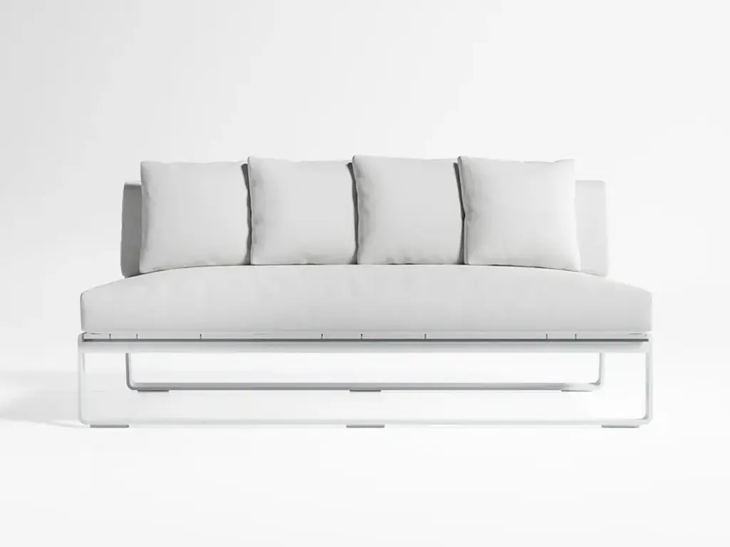 "Flat is a collection of outdoor furniture that we designed for GANDIABLASCO in 2008. Twelve years on, it has been so successful that we’ve continued designing new items. It’s a well-balanced and flexible collection; an essentially formal concept with a light and airy structure in which fabric plays an important part."Made of thermo-lacquered aluminium profiles and 100% recyclable polyethylene. Polyurethane foam rubber covered with water-repellent fabric. Removable fabric cover.Collections colour sample: white, agate grey, cement grey, sand, bronze, blue grey and anthracite.