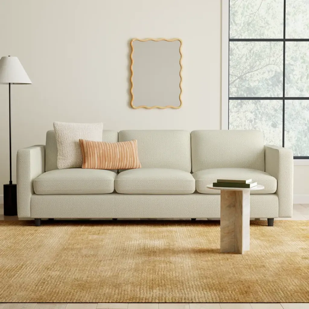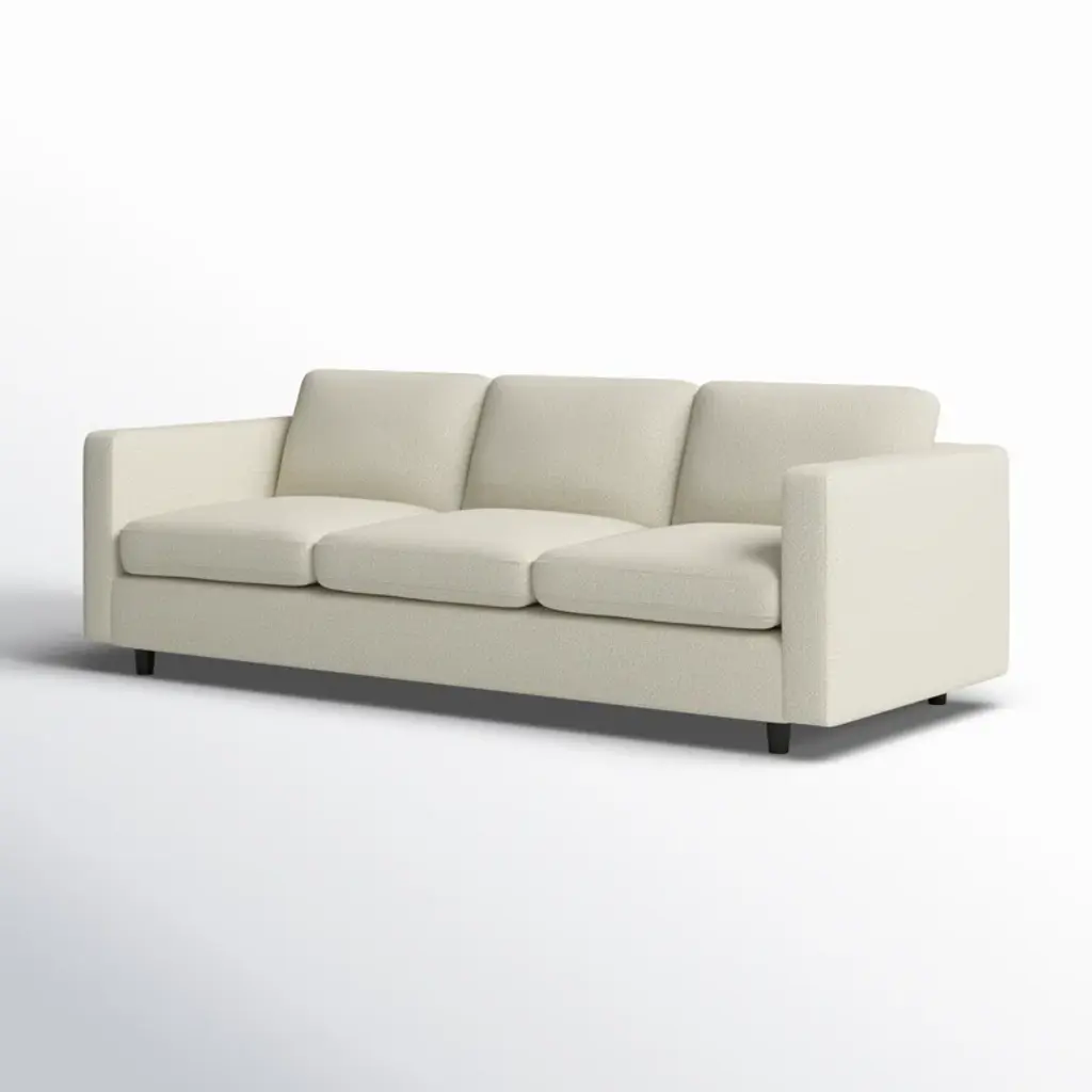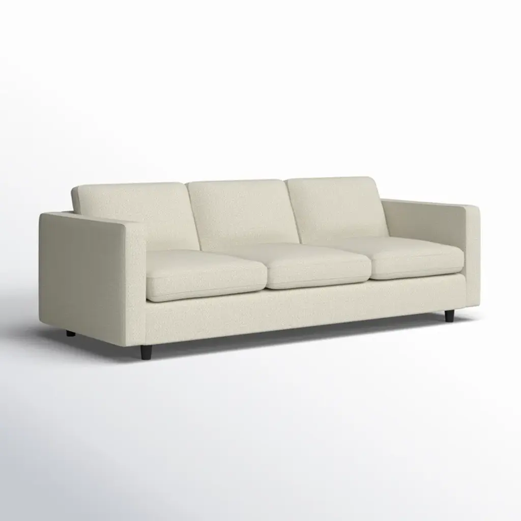 Complete your living room update with this upholstered sofa. We love its crisp clean-lined silhouette and the wide square arms that really make a statement. The wooden frame comes with integrated sinuous springs along with plenty of foam filling to keep you calm and cozy. Select from an array of fabric options to create your own signature style.