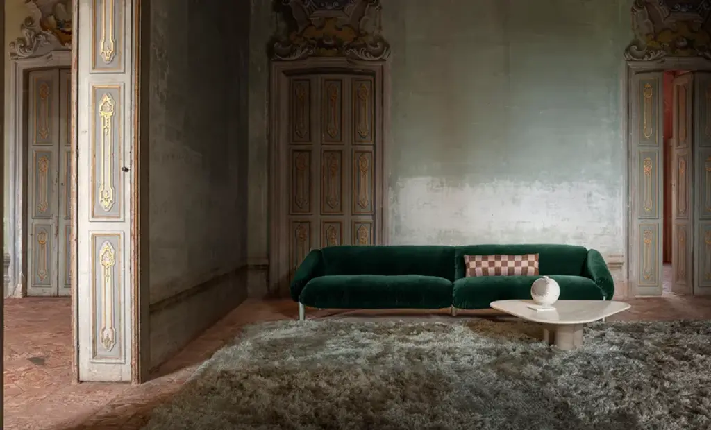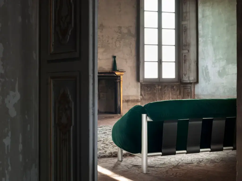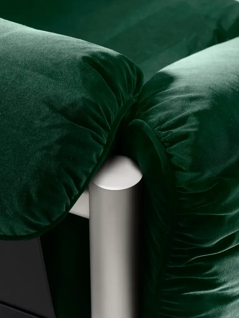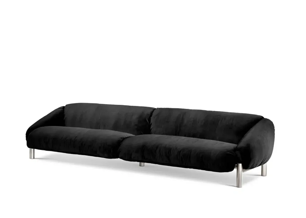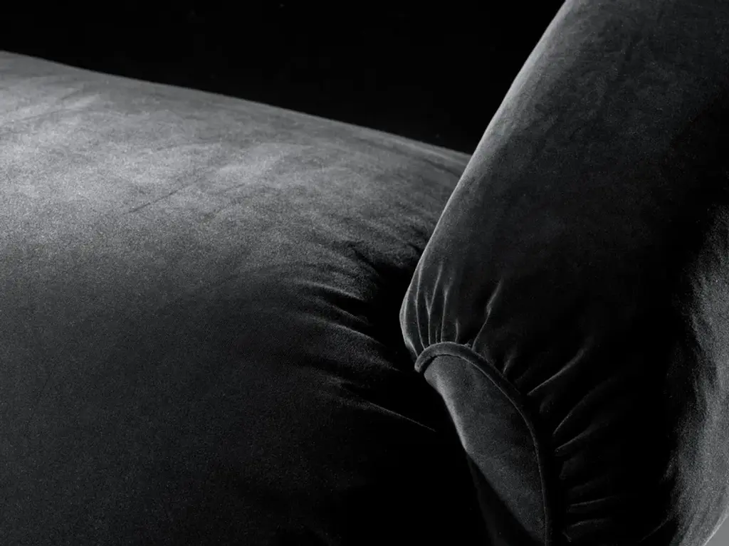 Flo is a 4 seater sofa made by a metal structure made with the skill of Ghidini 1961 known for its excellence in metalworking, the black velvet of the covering gives a strong and distinctive character suitable for both modern and traditional environments. A reinterpretation that fully embraces the principles of contemporary design.The Flo series pays homage to mid-20th century Brazilian design, emphasizing high-quality materials and comfort such as the use of leather straps to support the seat and backrest.