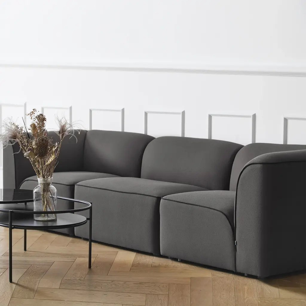 The Flora modular sofa is inspired by the natural shapes of vegetation and how petals of flowers grow in organic ways. With this concept in mind, the Spanish design studio Yonoh wanted to develop a modular sofa series with the outlines of a petal flower. The result is four different modules and an armrest cushion, which allows for an unlimited number of combinations. Features