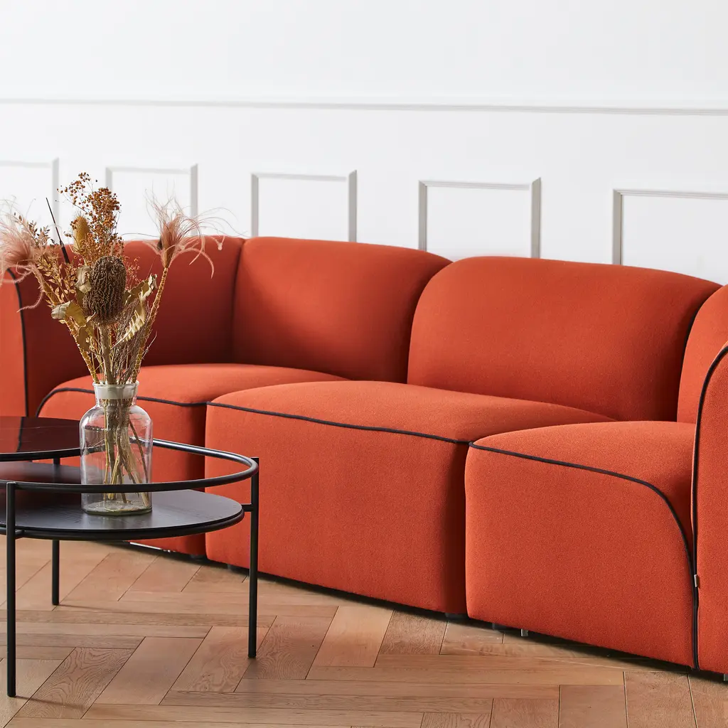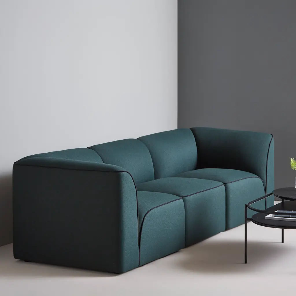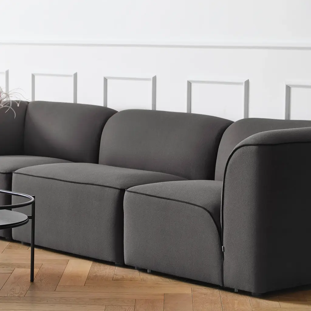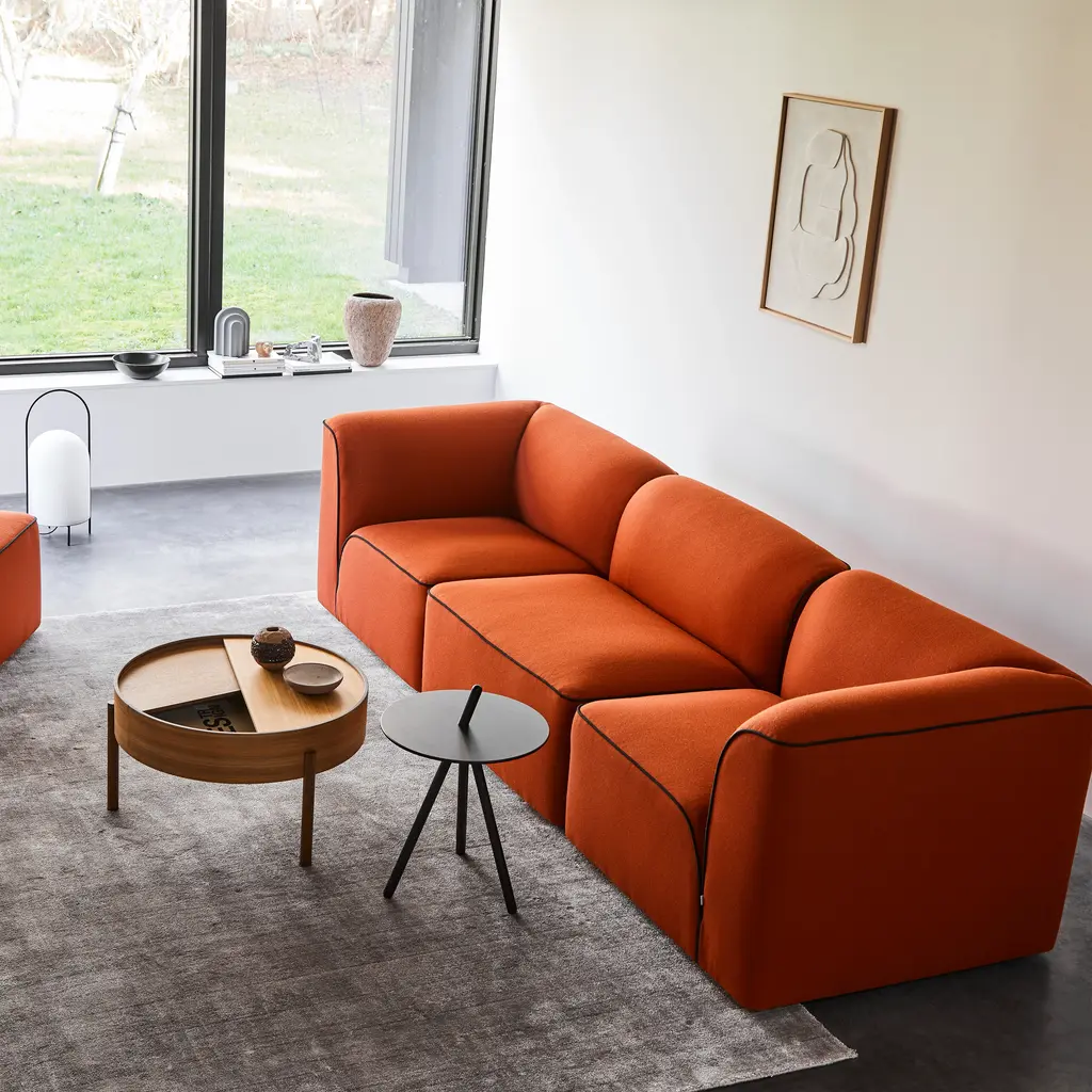 Flora brings inviting proportions, with its low backrest and deep seat, to assure extended comfort in a pre-configured 3-seater version that suits a variety of spaces. As the name implies, the sofa’s rounded contours were inspired by the way flower petals grow, and its designers at Valencia studio Yonoh added black cushion piping to elegantly make the point.