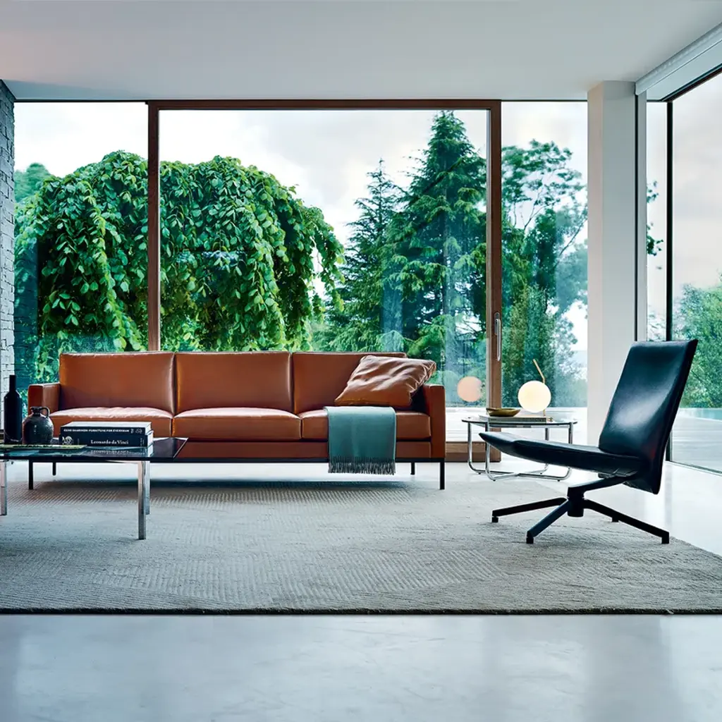 FLORENCE KNOLL RELAX - 3 seater sofa.CONSTRUCTIONMetal structure embedded in polyurethane foam.Exposed metal frame and legs. Heavy gauge tubular steel in polished chrome and painted finish.UPHOLSTERYSeat suspension with variable density foam. Seat and back cushions with variable density foam welted and covered with polyester fiberfills to enhance comfort.Upholstery available in a range of fabric and leather.This versatile collection includes a lounge chair, a two-seater sofa and a three-seater sofa. The KnollStudio logo and Florence Knoll's signature are stamped into base of each frame, to guarantee authenticity.