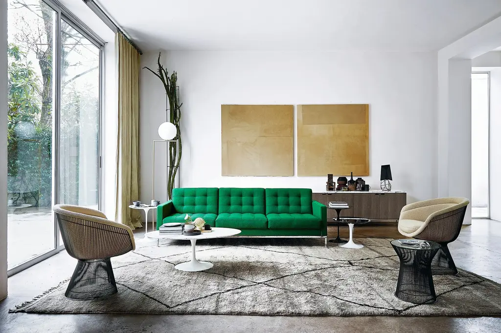The relaxed version of Florence Knoll’s classic lounge collection features deeper proportions for a softer, more relaxed sit. Consistent with all of Knoll’s designs, it has a spare, geometric profile that’s utterly modern and totally timeless.Florence Knoll always approached furniture design with the larger space in mind. Most important to her was how a piece fit into the overall environment—the room, the floor, the building. And while she never regarded herself as a furniture designer, her quest for harmony of space and consistency of design led her to design several of Knoll’s most iconic pieces—all simple, none plain. Her lounge collection, designed in 1954, is a perfect example of her restrained, geometric, architectural approach to furniture. How the relaxed sofa differs from the standard version: Nearly 3" deeper; polyester fiberfill added to tufted seat and back for added comfort; cushions are not welted.