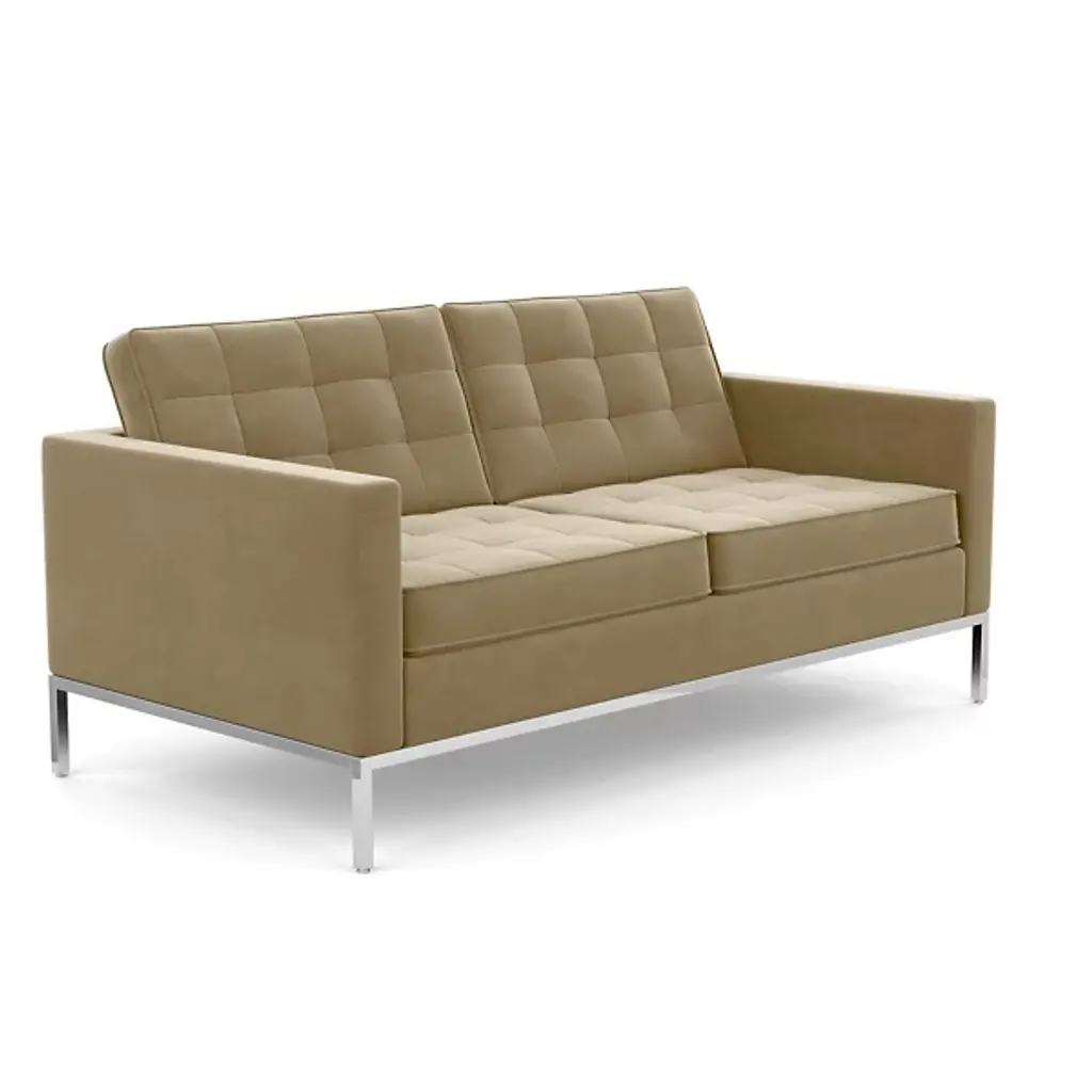 Warmed through color and texture, the Florence Knoll Sofa is a scaled-down translation of the rhythm and proportions of mid-century modern architecture. With a spare, geometric profile—an expression of the rational design approach Florence Knoll learned from her mentor, Mies van der Rohe—the sofa is utterly modern and totally timeless.Florence Knoll always approached furniture design with the larger space in mind. Most important to her was how a piece fit into the overall environment—the room, the floor, the building. And while she never regarded herself as a furniture designer, her quest for harmony of space and consistency of design led her to design several of Knoll’s most iconic pieces—all simple, none plain. Her lounge collection, designed in 1954, is a perfect example of her restrained, geometric, architectural approach to furniture.