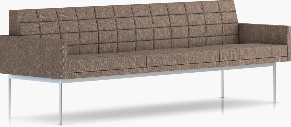 Warmed through color and texture, the Florence Knoll Sofa is a scaled-down translation of the rhythm and proportions of mid-century modern architecture. With a spare, geometric profile—an expression of the rational design approach Florence Knoll learned from her mentor, Mies van der Rohe—the sofa is utterly modern and totally timeless.Florence Knoll always approached furniture design with the larger space in mind. Most important to her was how a piece fit into the overall environment—the room, the floor, the building. And while she never regarded herself as a furniture designer, her quest for harmony of space and consistency of design led her to design several of Knoll’s most iconic pieces—all simple, none plain. Her lounge collection, designed in 1954, is a perfect example of her restrained, geometric, architectural approach to furniture.