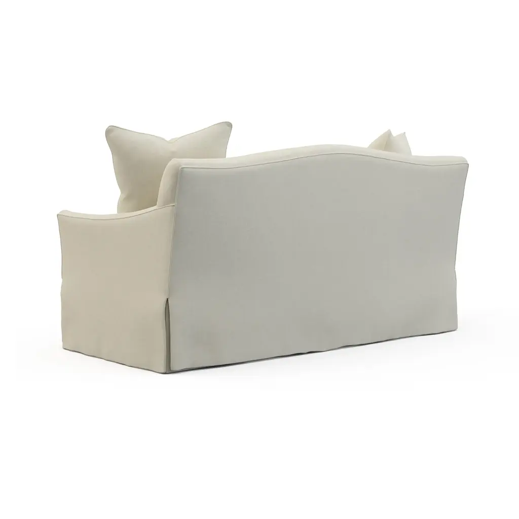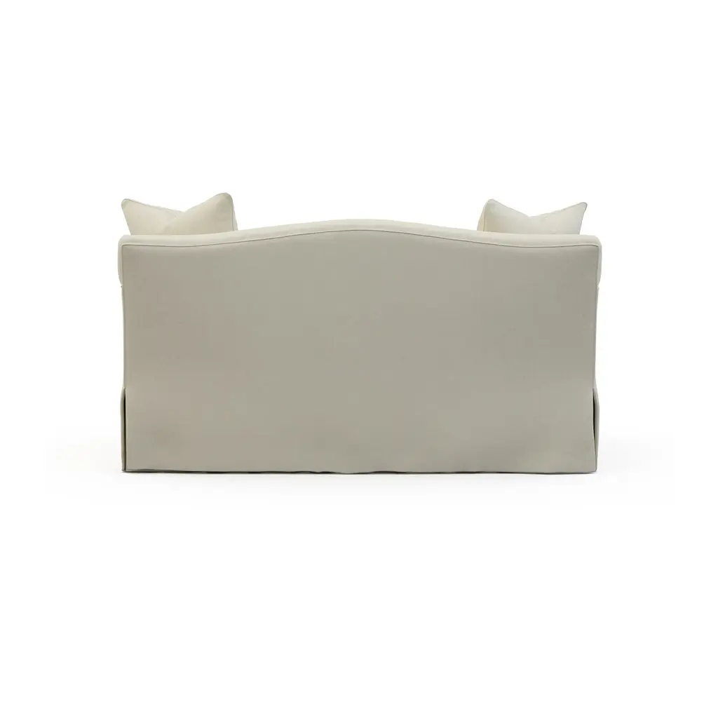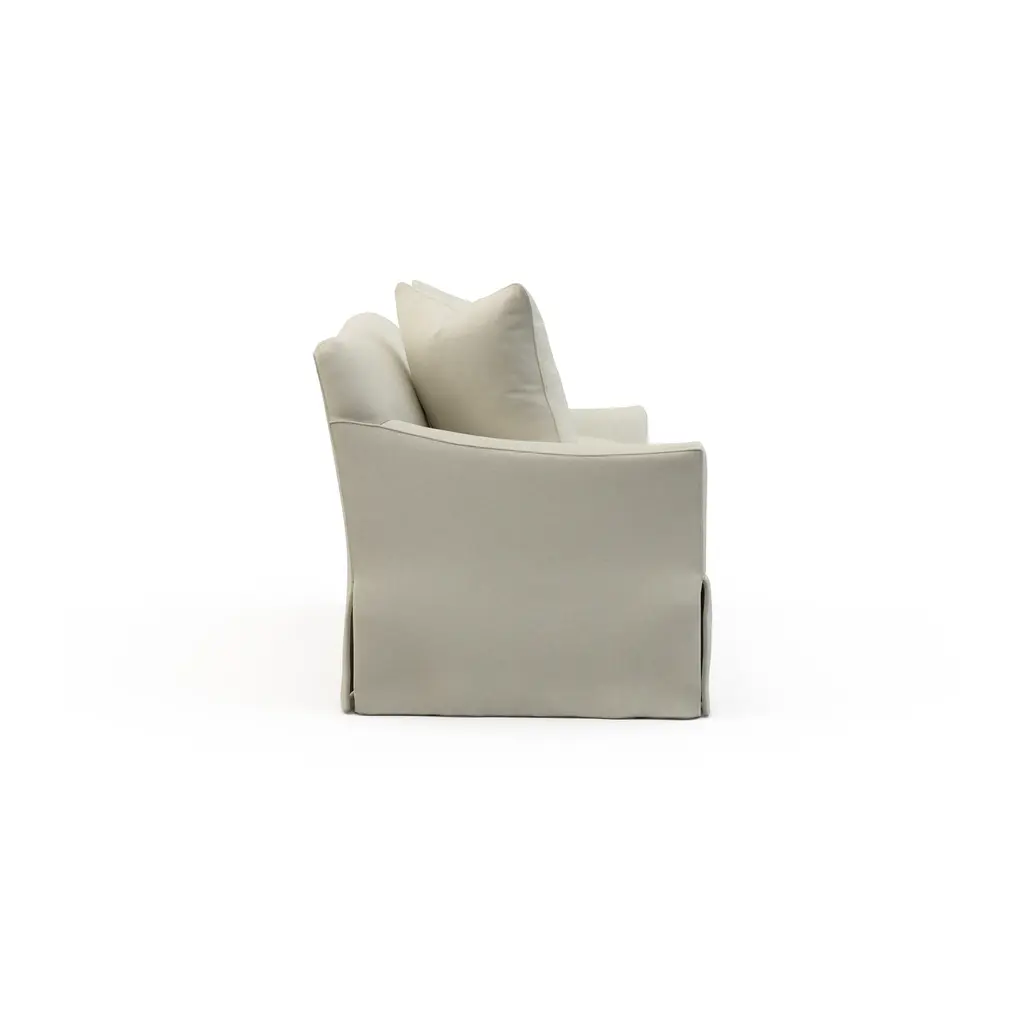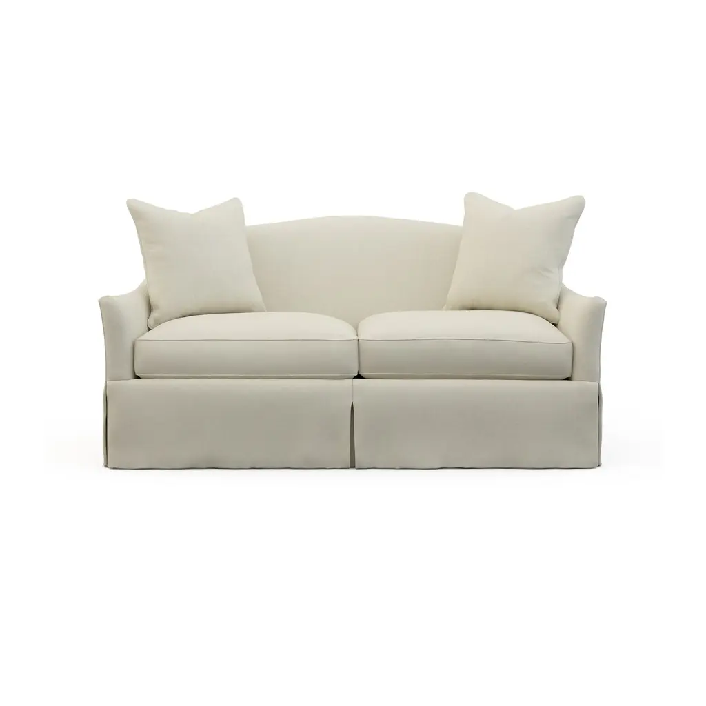 The Florian Sofa's gently curved back and arms pair with it's dressmaker skirt to create a piece that is elegant and timeless. Maintain it's quiet elegance with a neutral fabric, or throw caution to the wind and add a pop to your space with a funky color, texture, or pattern. Ships In 8-10 Weeks Dressmaker skirt Two 21" square throw pillows Tight back Two loose seat cushions As Shown Fabric: Rayburn Oatmeal, McQueen Blue with Affinity White Welt and Lois Select Tape Blue Skirt Trim (lifestyle) As Shown Finish: Antique Walnut If you choose to purchase COM, once you have placed your order a customer service rep will contact you regarding where to send your fabric. Please note that current lead time is 17-19 weeks once your fabric arrives at the factory, and if unused fabric is under 1.5 yards, it cannot be sent back to you.This product can be special ordered in additional fabrics, leathers, and cushion fillings. Click here to email us for for additional information about special ordering.This image is for illustrative purposes only. The colors shown are accurate within the constraints of lighting, photography, and the color accuracy of your screen.