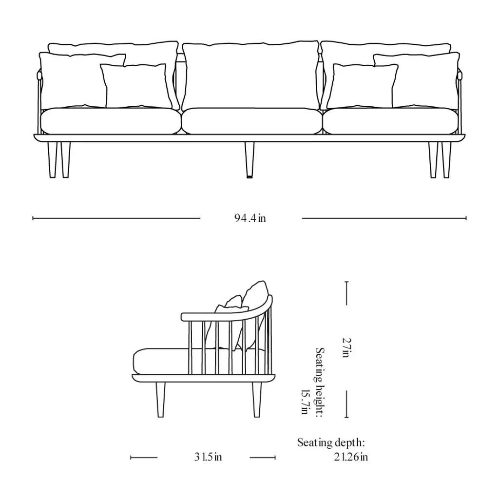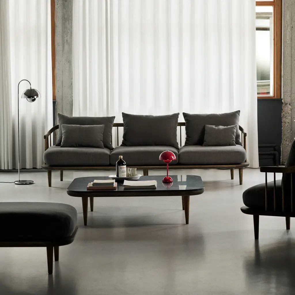 Experience a new level of comfort and sophistication with the Fly 3-Seater Sofa by Space Copenhagen for &tradition. Crafted with a sculptural design and organic shapes, this sofa allows you to sit, lie, and relax without imposing any posture. The slatted wood backrest and loose cushions provide optimal comfort and can be arranged based on your own needs. Highlights