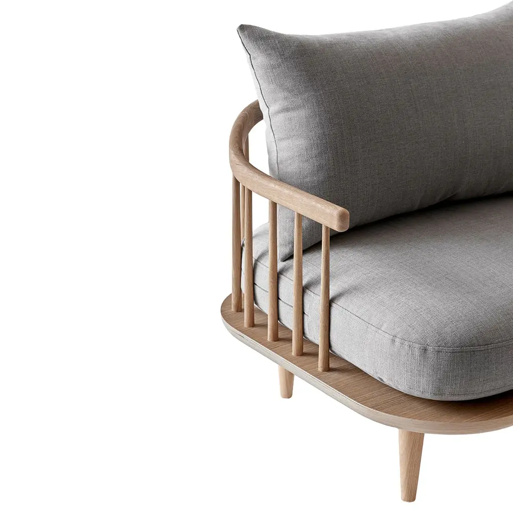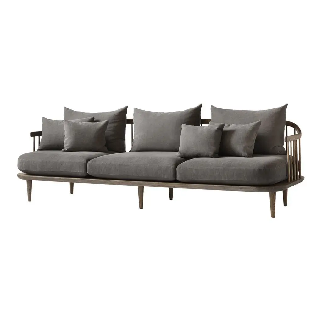 With the Fly 3-Seater, Space Copenhagen amplifies your experience of lounging and socializing with ease. Three enormous seat cushions invite you and anyone else you would like to be with to relax in absolute comfort, with all kinds of options as to the solid oak colors and types of upholstery. Rearrange the back cushions anyway you like. Add a dog or cat, or curl up with a book or a cup of coffee. And you have all the creature comforts that make a house feel like a home - in a sofa.