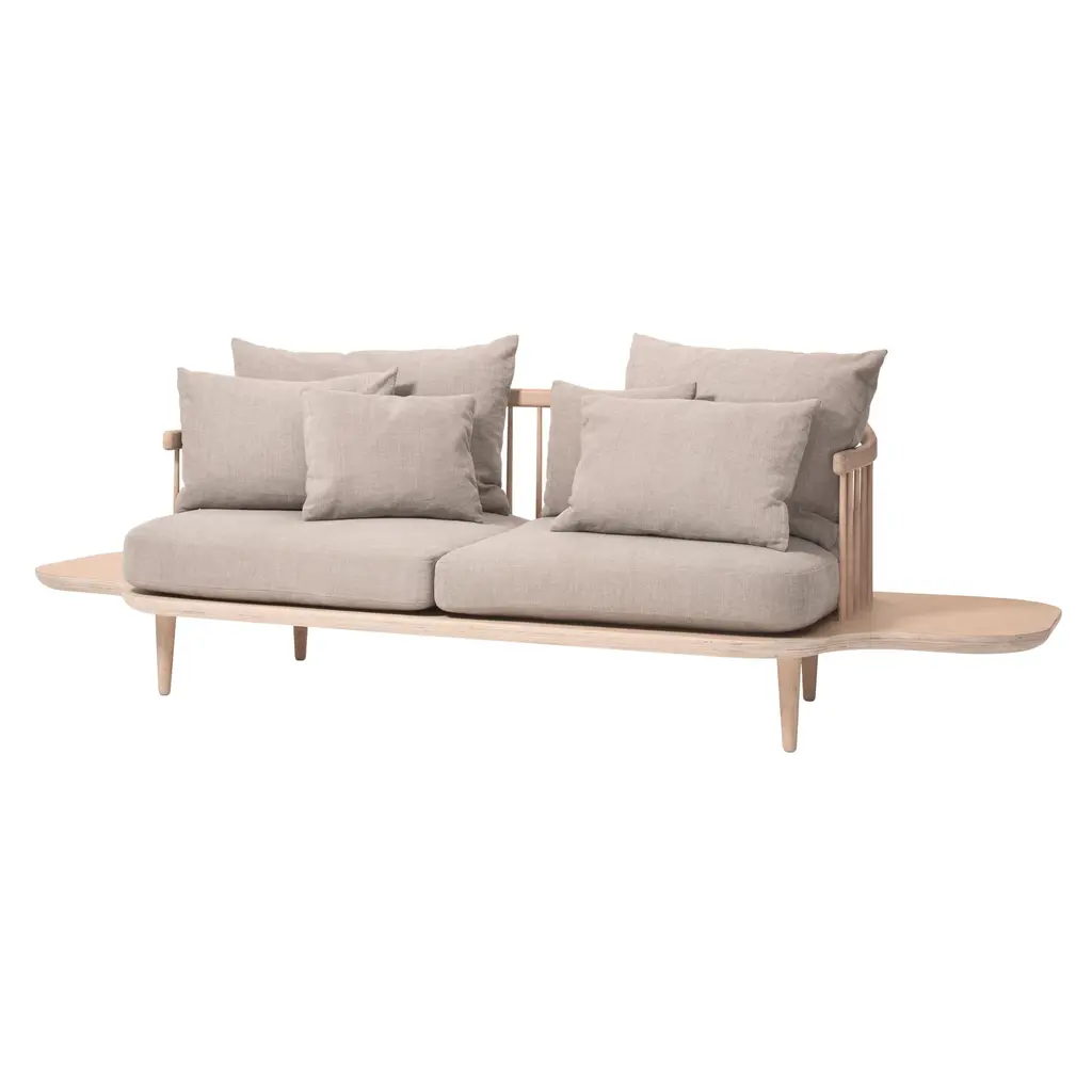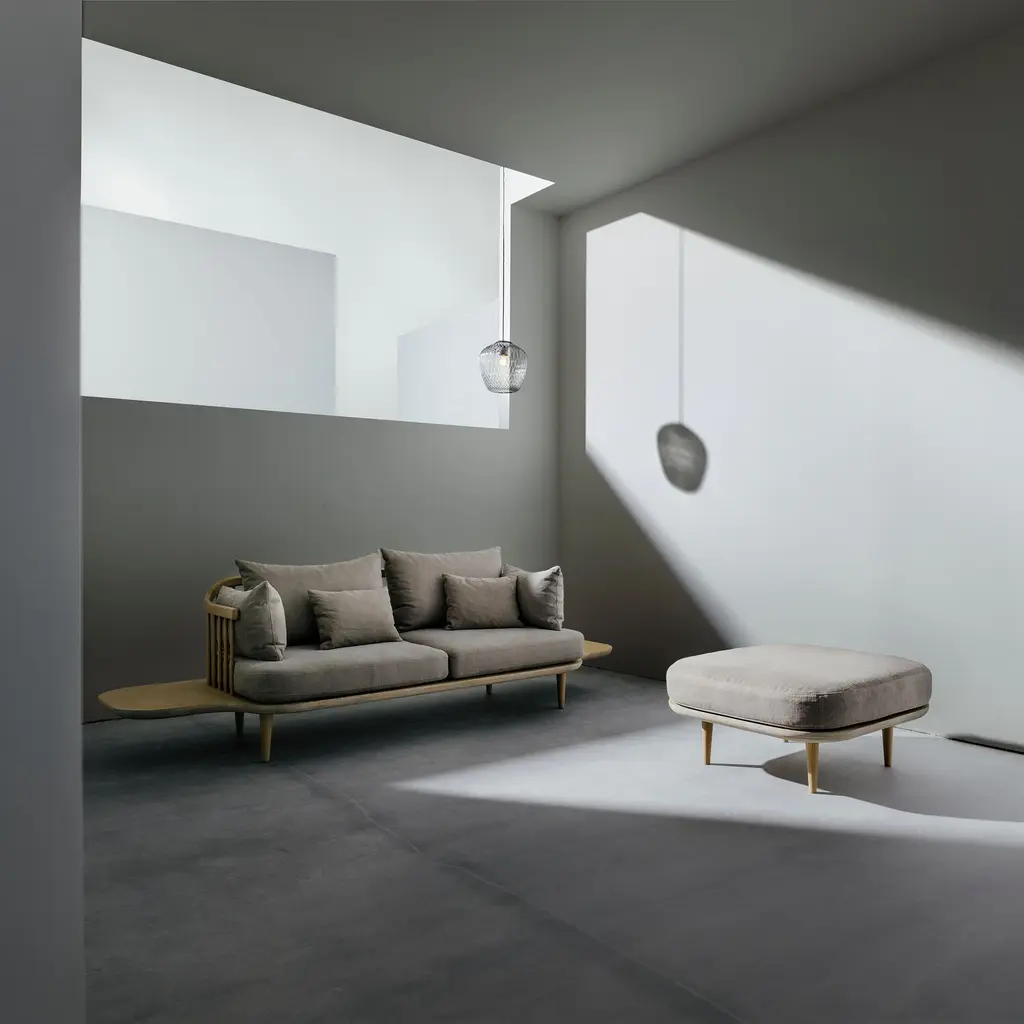 For those who like a little structure amid a casual mien, the Fly Sofa SC3 strikes a balance with its configured side tables to place a book, a cuppa or a cocktail. Yet, the loose cushions can be arranged to suit any combination of sitting, sprawling, laying or lolling. In some respects, &Tradition's Fly collection pushes back against the vaunted Scandinavian furniture lineage of defined shapes and ergonomic seating. Yet Signe Bindslev Henriksen and Peter Bundgaard Rützou of the design studio Space Copenhagen honor that tradition in their own way, in the contrast of textured cotton/linen upholstery and artfully crafted oak frame with a familiar slatted back rest. Over time, the oiled finish in a choice of white pigment or smoky black will age beautifully. Though they take a different path, the designers embrace a guiding tenet of their Danish heritage-timelessness.