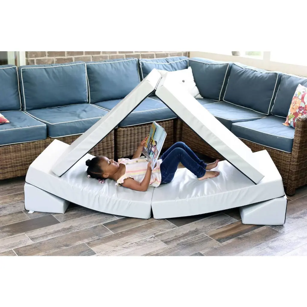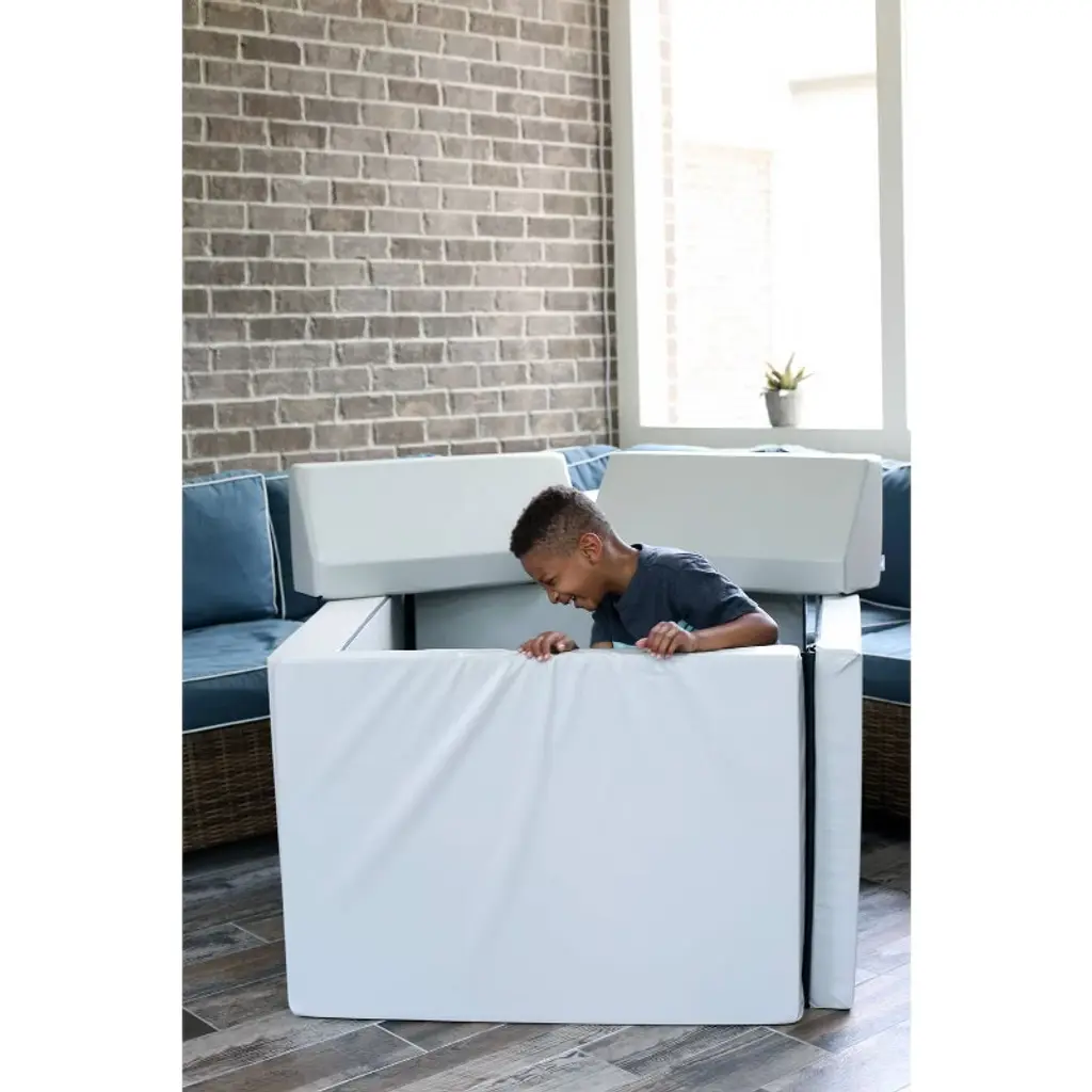 The Kids Couch Built For Active Play. Equal parts furniture and play set, the Blocksy is the couch made with kids in mind. Each Blocksy includes two folding bases and two wedge cushions, and the sky is the limit for how they’re used! Kids will love it’s fun versatility, and parents will love it’s clean, modern design. Foam & vinyl construction means it’s durable and easy to clean.