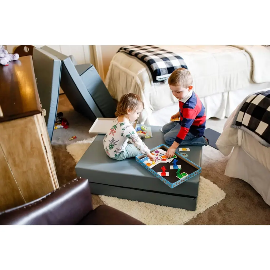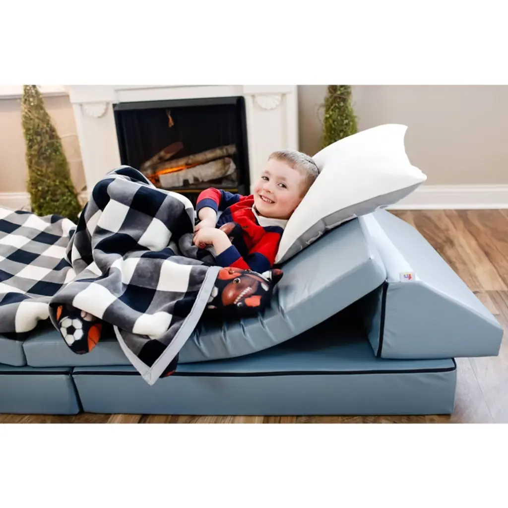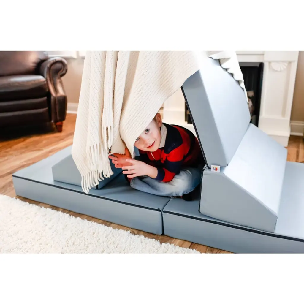 The Kids Couch Built For Active Play. Equal parts furniture and play set, the Blocksy is the couch made with kids in mind. Each Blocksy includes two folding bases and two wedge cushions, and the sky is the limit for how they’re used! Kids will love it’s fun versatility, and parents will love it’s clean, modern design. Foam & vinyl construction means it’s durable and easy to clean.