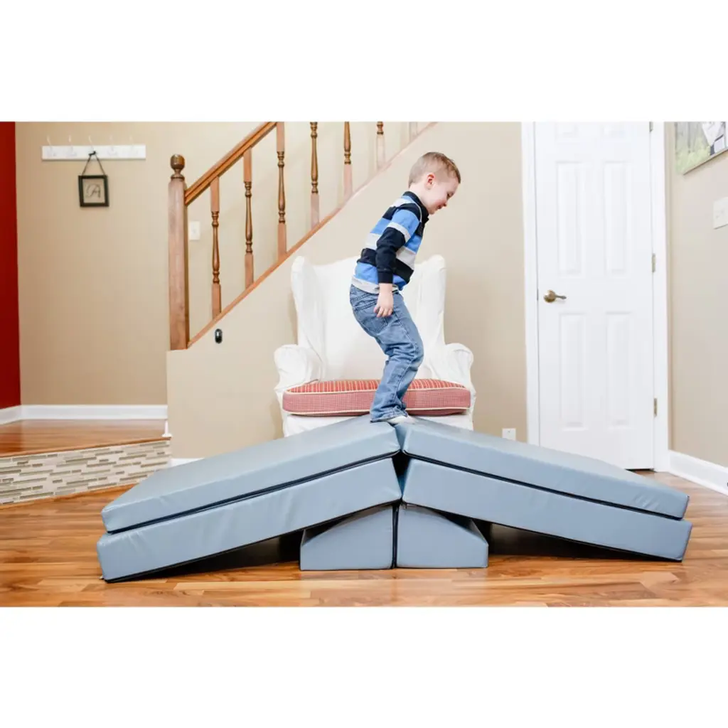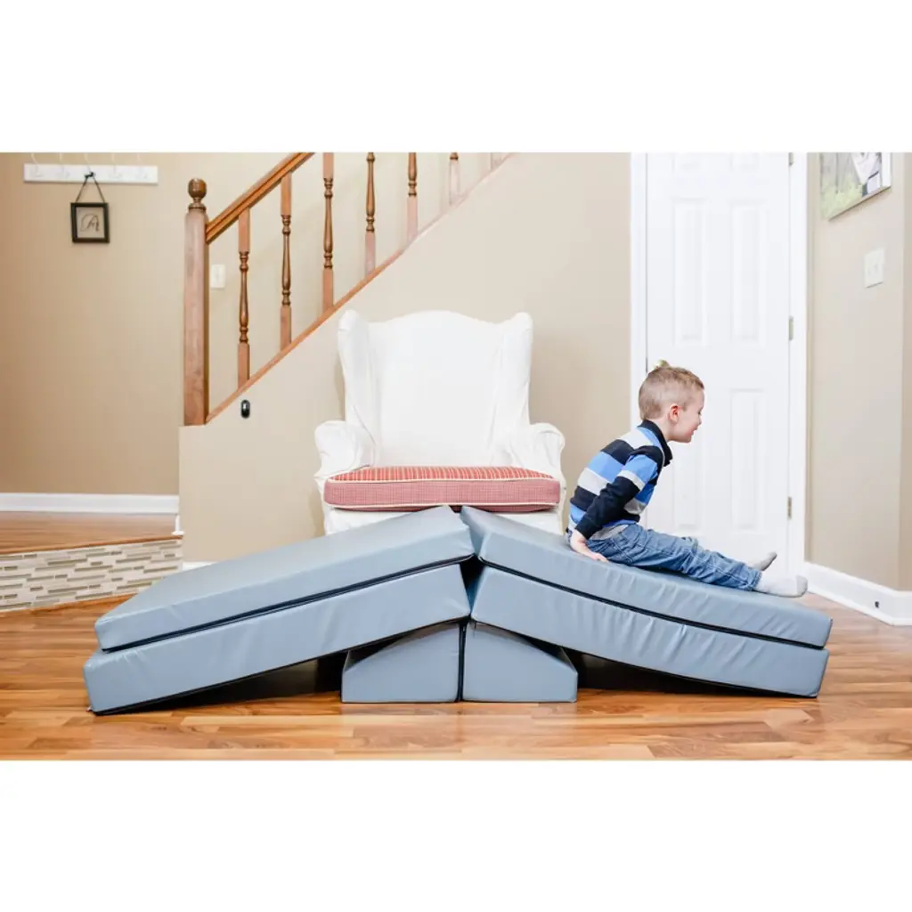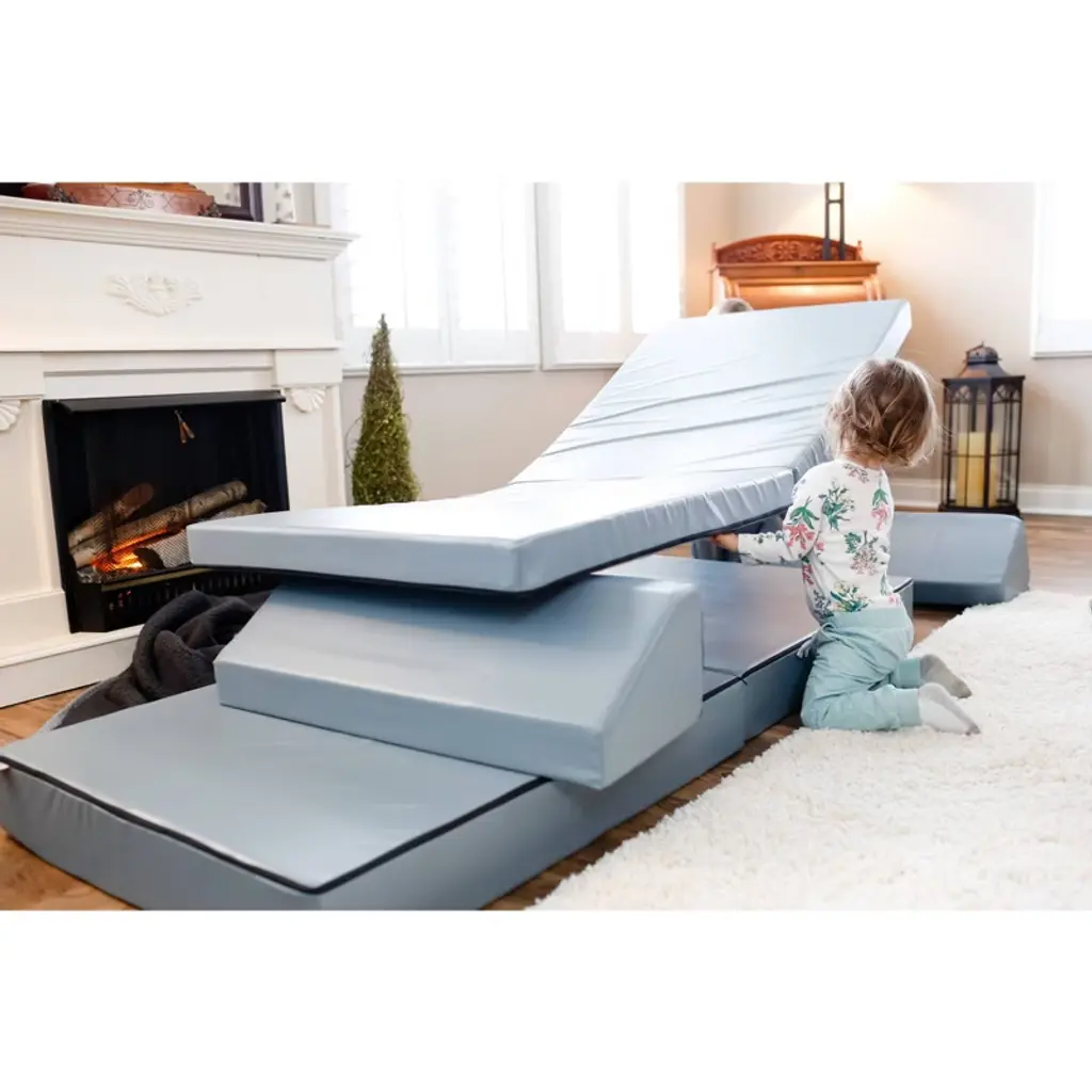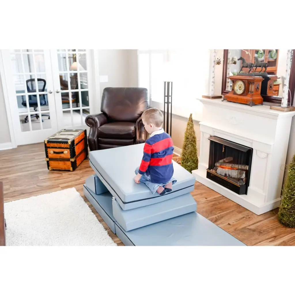 The Kids Couch Built For Active Play. Equal parts furniture and play set, the Blocksy is the couch made with kids in mind. Each Blocksy includes two folding bases and two wedge cushions, and the sky is the limit for how they’re used! Kids will love it’s fun versatility, and parents will love it’s clean, modern design. Foam & vinyl construction means it’s durable and easy to clean.