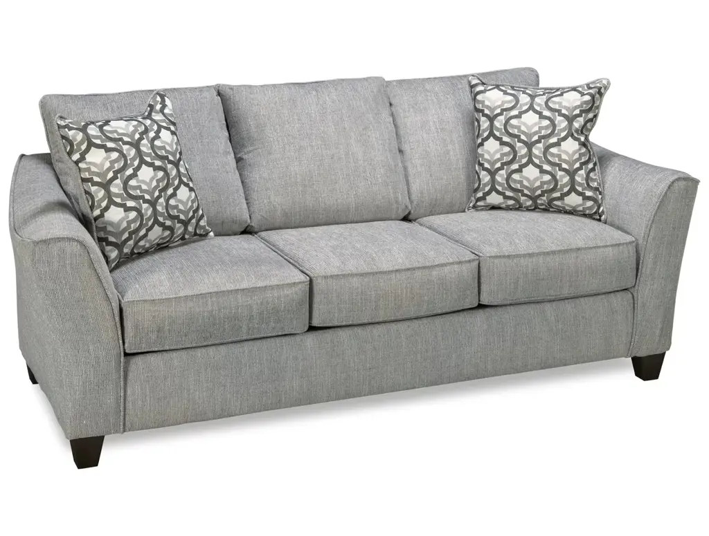 Casual yet sophisticated, the Peak Living Foothill Sofa offers lounging comfort for your living room. This transitional-style sofa features tonal welt trim, sloped arms, and tapered square legs. Includes two arabesque patterned toss pillows for added comfort and style.