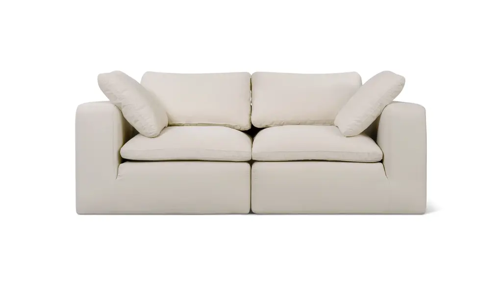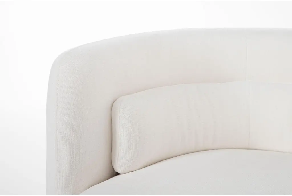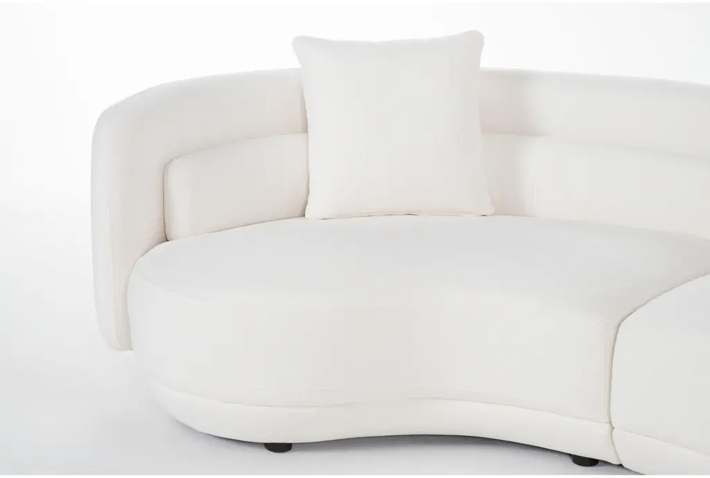 The Formosa White Fabric 103" 2 Piece Curved Sofa brings modern sophistication to your living room. Upholstered in Joyce Ivory fabric, this sofa combines firm comfort with a stylish curved design. Perfect for any family room or common space, its modular configuration allows for versatile arrangement.