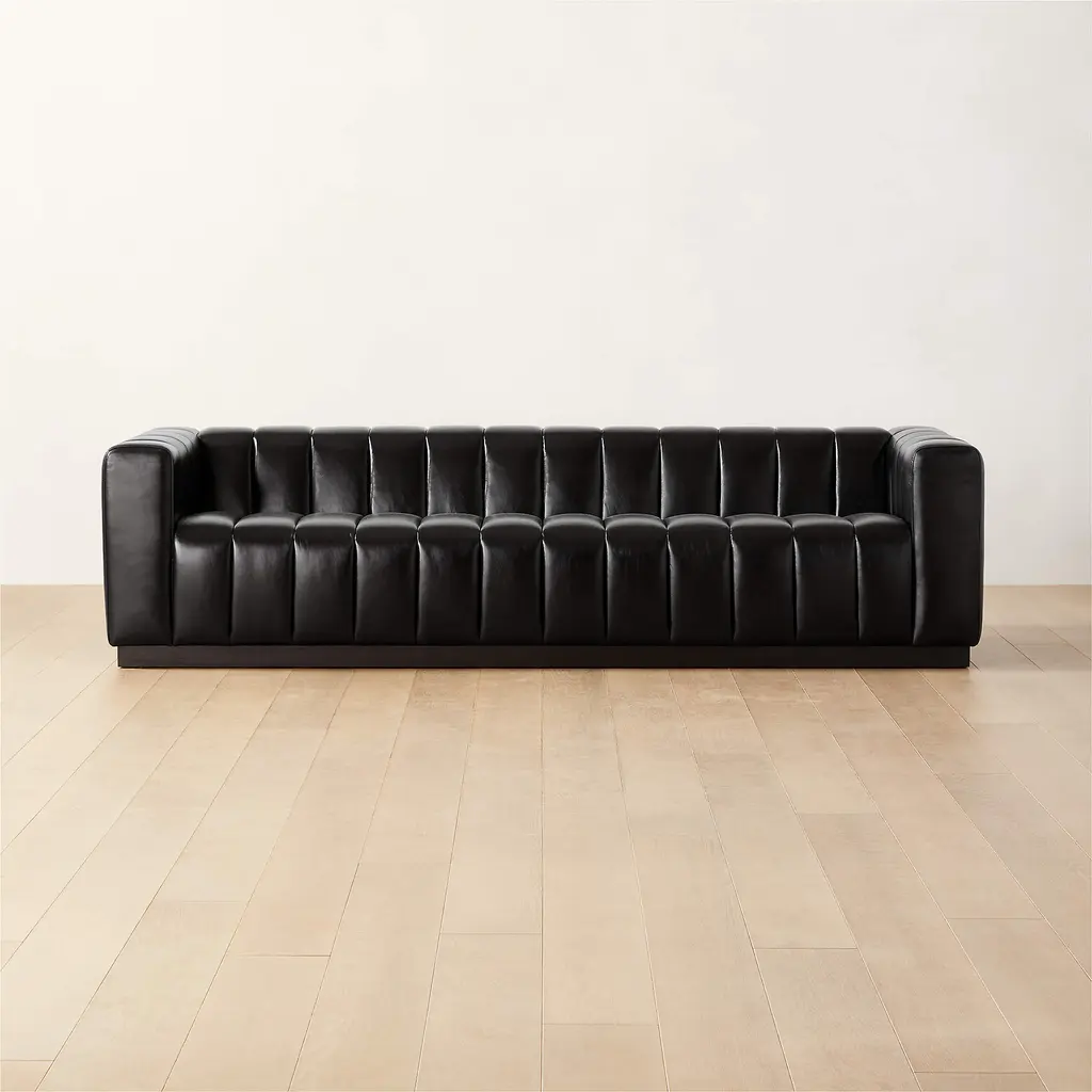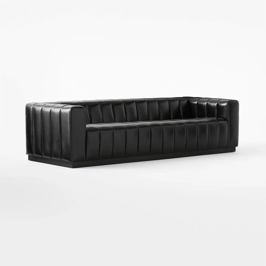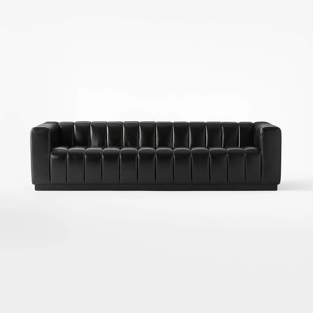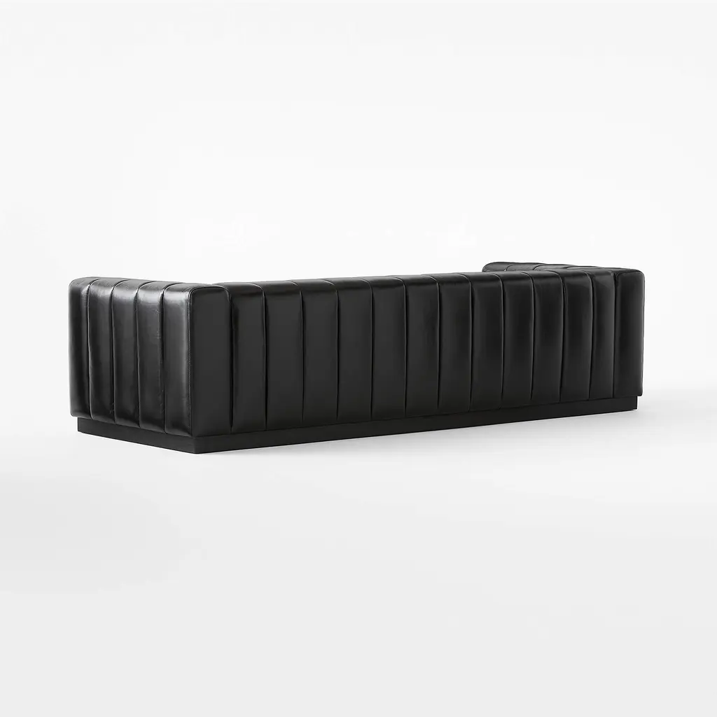 Forte 101" Extra-Large Channeled Leather Sofa with Black Base Bello Black