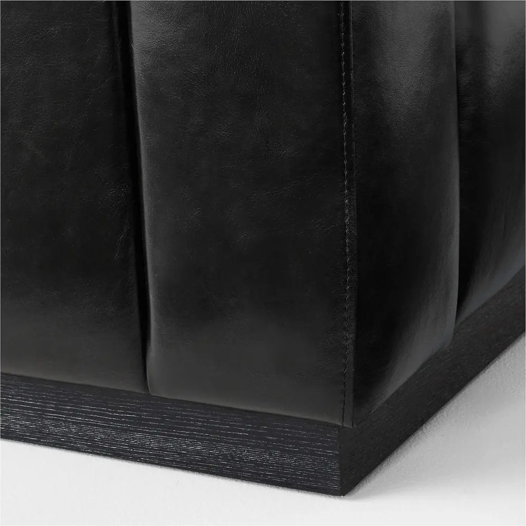 Cushy channels of top-grain leather line the length of this extra-long sofa by Mermelada Estudio. Soft to the touch with a sit on the firmer side, this unexpectedly deep sofa is comfy enough to really curl up. Low-profile wood base with matte black stain brings the right amount of sleekness to this vintage Italian modern statement piece. CB2 exclusive.