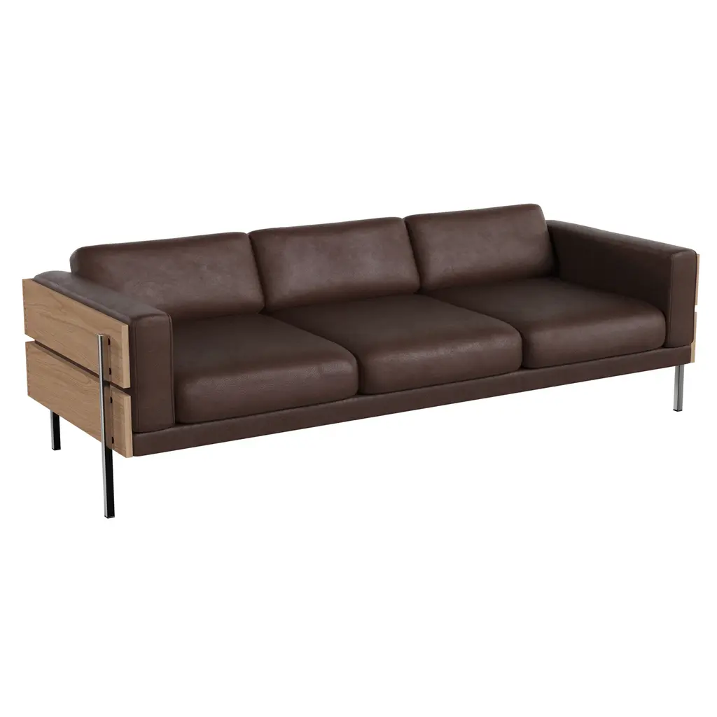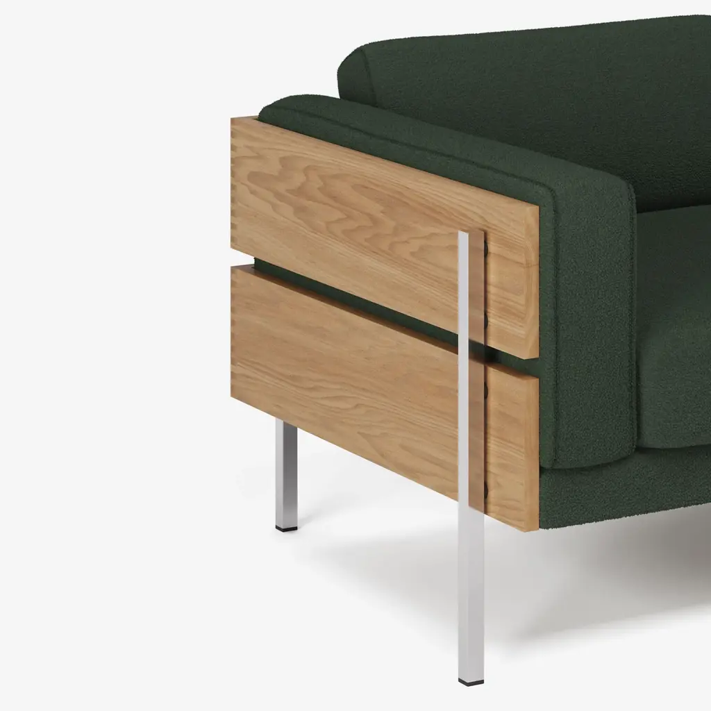 With this bold 1964 design, Robin Day challenged the notion of hiding a sofa’s timber frame under the upholstery, instead placing it on the outside to create the Forum’s handsome and unmistakable signature. Beautifully crafted with finger-joint detail, the full-width plank casing in solid walnut or oak surrounds leather- or fabric-clad foam cushions to ensure ultimate comfort, with a metal-reinforced frame for strength and longevity and supported by chrome-plated legs mounted to the outside.