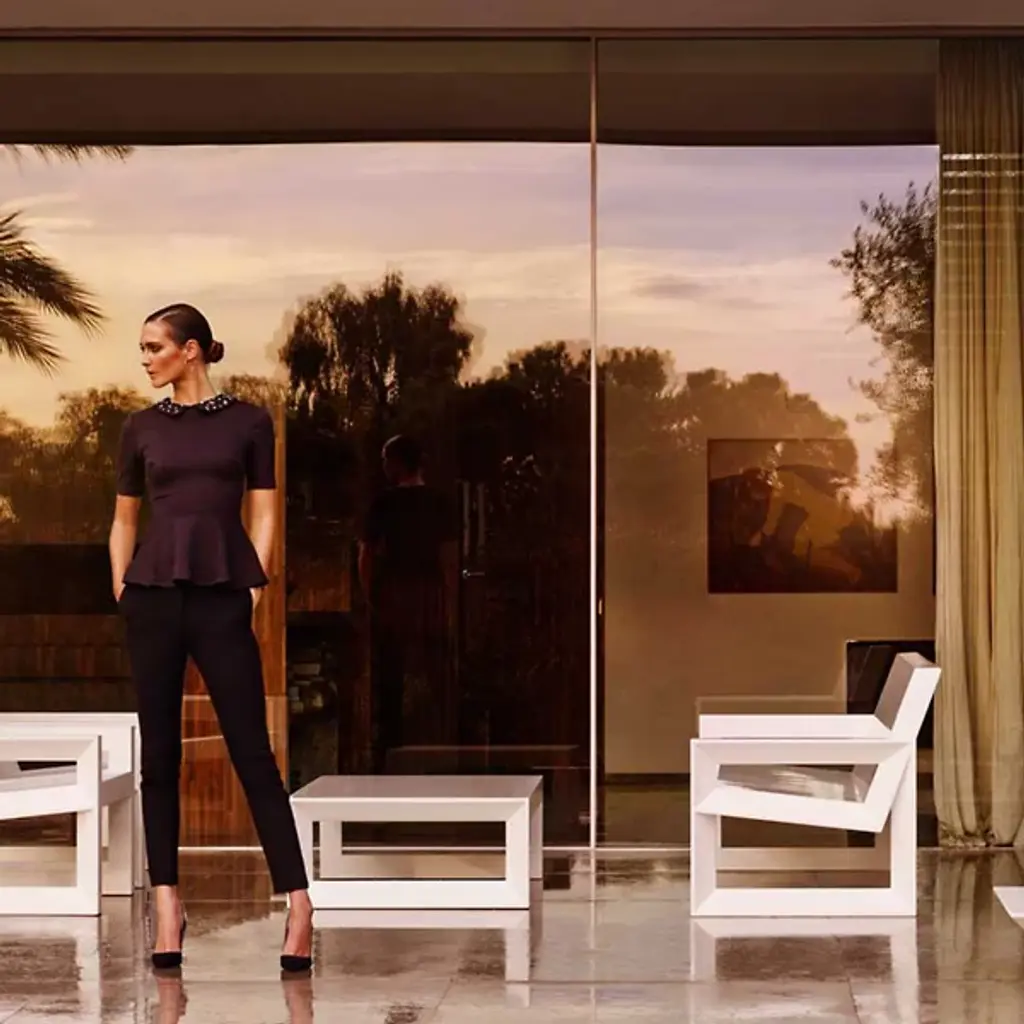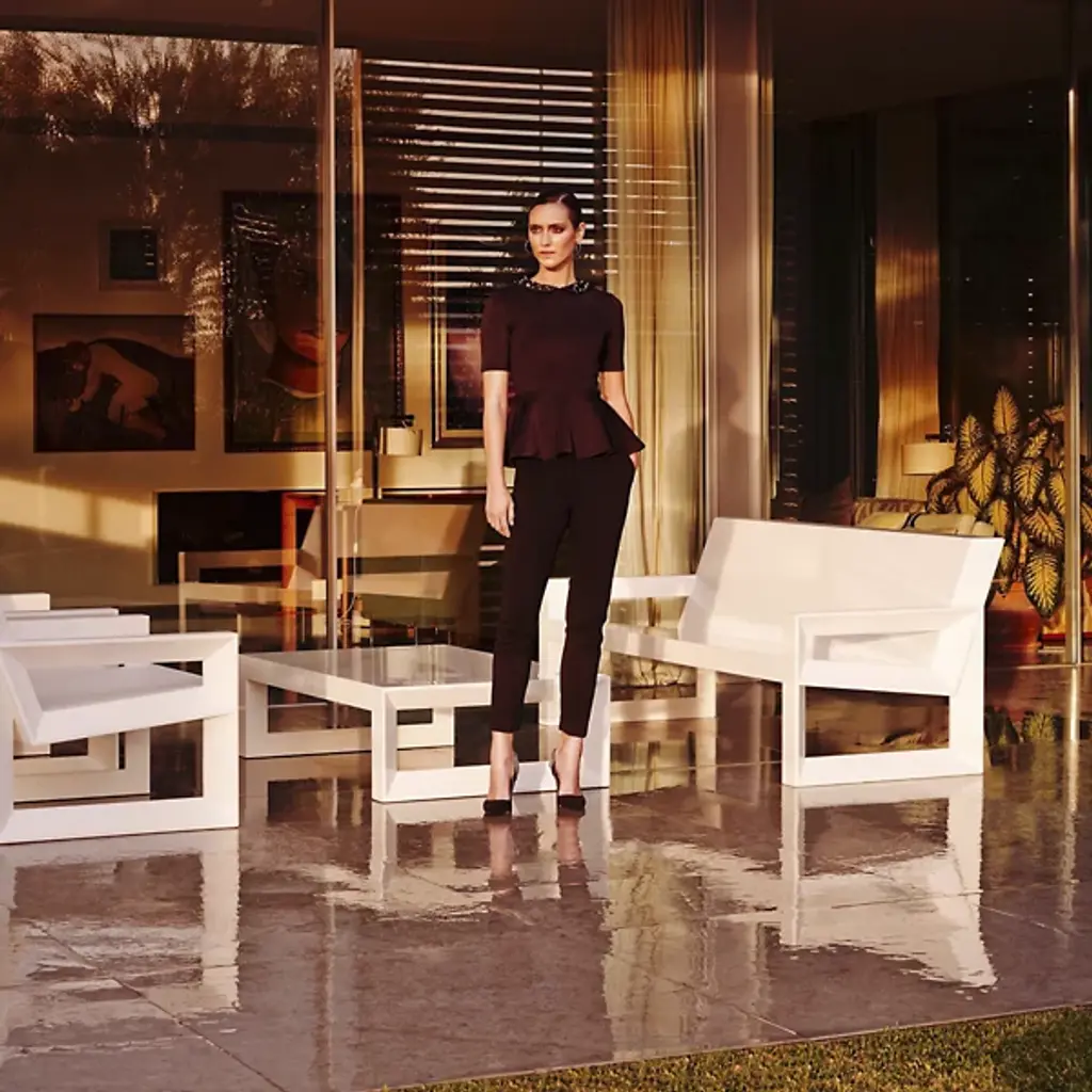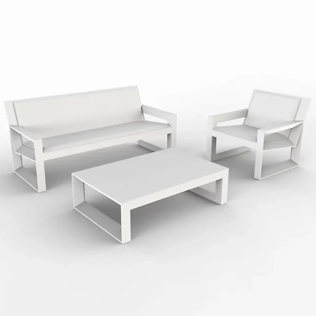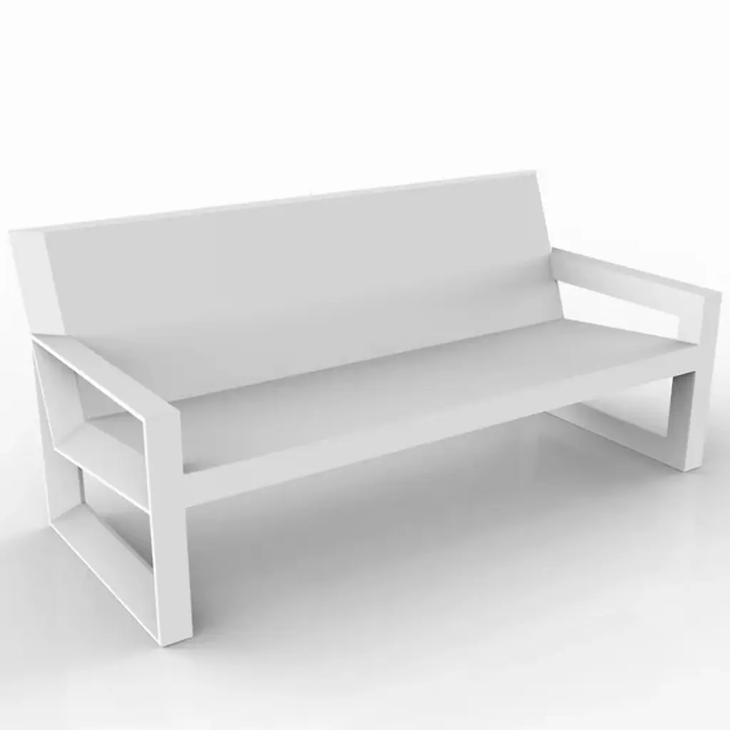 The sleek angularity of the Vondom Frame Outdoor Sofa gives it every appearance of being made out of wood or metal. However, it was actually produced by rotation molding white liquid polyethylene. This makes the sofa both sharply angular and perfectly smooth where it needs to be. The expansive smooth surfaces of the seat and back in particular are made even more comfortable by the matte finish.