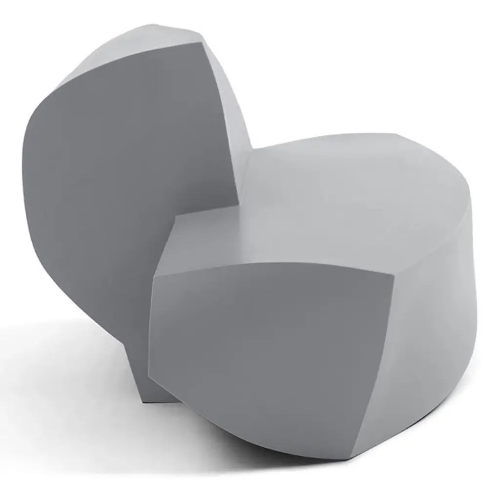The signature sharp angles and curved planes of Frank Gehry's architecture are evident in the Heller Furniture Frank Gehry Sofa. This is made possible by putting a tough, waterproof polymer through a specialized roto-molding process. Mix and match the sofa with other pieces in the Frank Gehry collection for a playful, colorful look indoors or out.