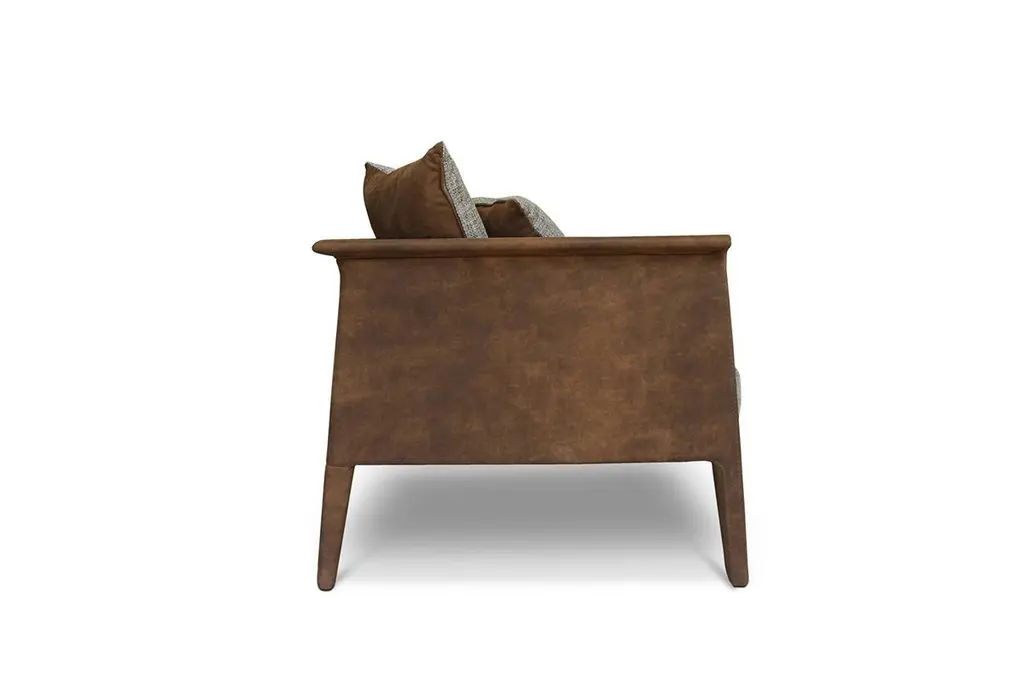 Franz sofa by CollectorMaterials: Structure upholstered in genuine leather. Backrest and seat cushions in fabric.Dimensions: W 190 x D 78 x H 70 cm x SH 45 cmDepending on the material the price may vary.A compact sofa that features an enveloping back that extends its curve to form the armrest, with the inviting softness of its cushions this sofa provides the comfort and posture you need during reading and relaxing.The Collector brand aims to be part of the daily life by fusing furniture to our home routine and lifestyle, that’s why we’ve designed our pieces with the intention to embrace diverse styles and to blend in inside anycontemporary setting.Described by our motto: “built to fit a good idea.”, this wide range of product typologies were designed to work in diverse layers of importance. It can work as a center piece of the house, with strong personality or just complementing the background by gently blending in. The result is a clean-lined furnishing collection that can easily be customized to work specifically and according to each unique need, reflecting essentially our traditional methods of furniture manufacturing with accurate industrial production methods.We strive to achieve the best quality possible by selecting the best materials and by the constant development of our production processes and manufacturing partnerships.