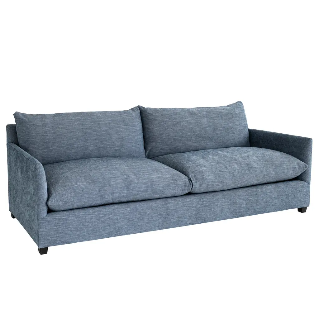 The Fraser sofa's contemporary modular design infuses the elegance of gentle slopes with linear precision, harmoniously merging soft curves and angular forms into its 60s and 70s-inspired aesthetic. Crafted on a minimalist plinth base and upholstered in sumptuous 100% polyester, foam and fiber seating invites serene repose.