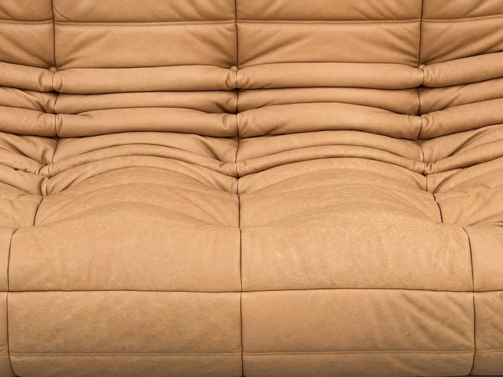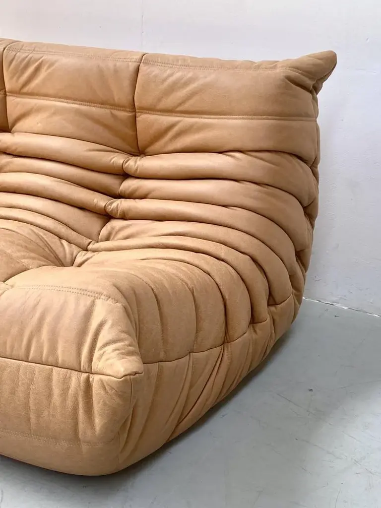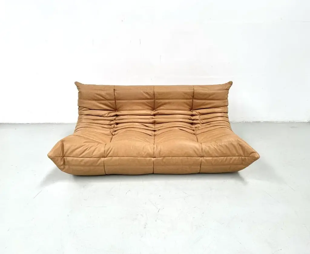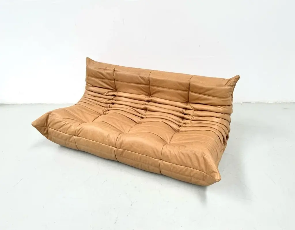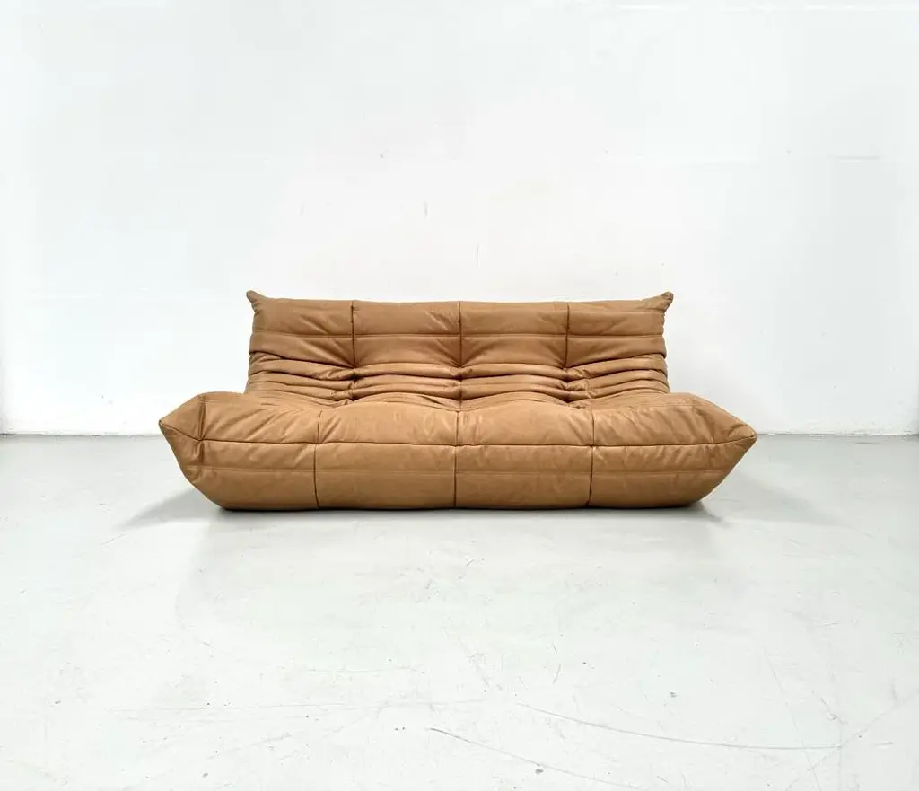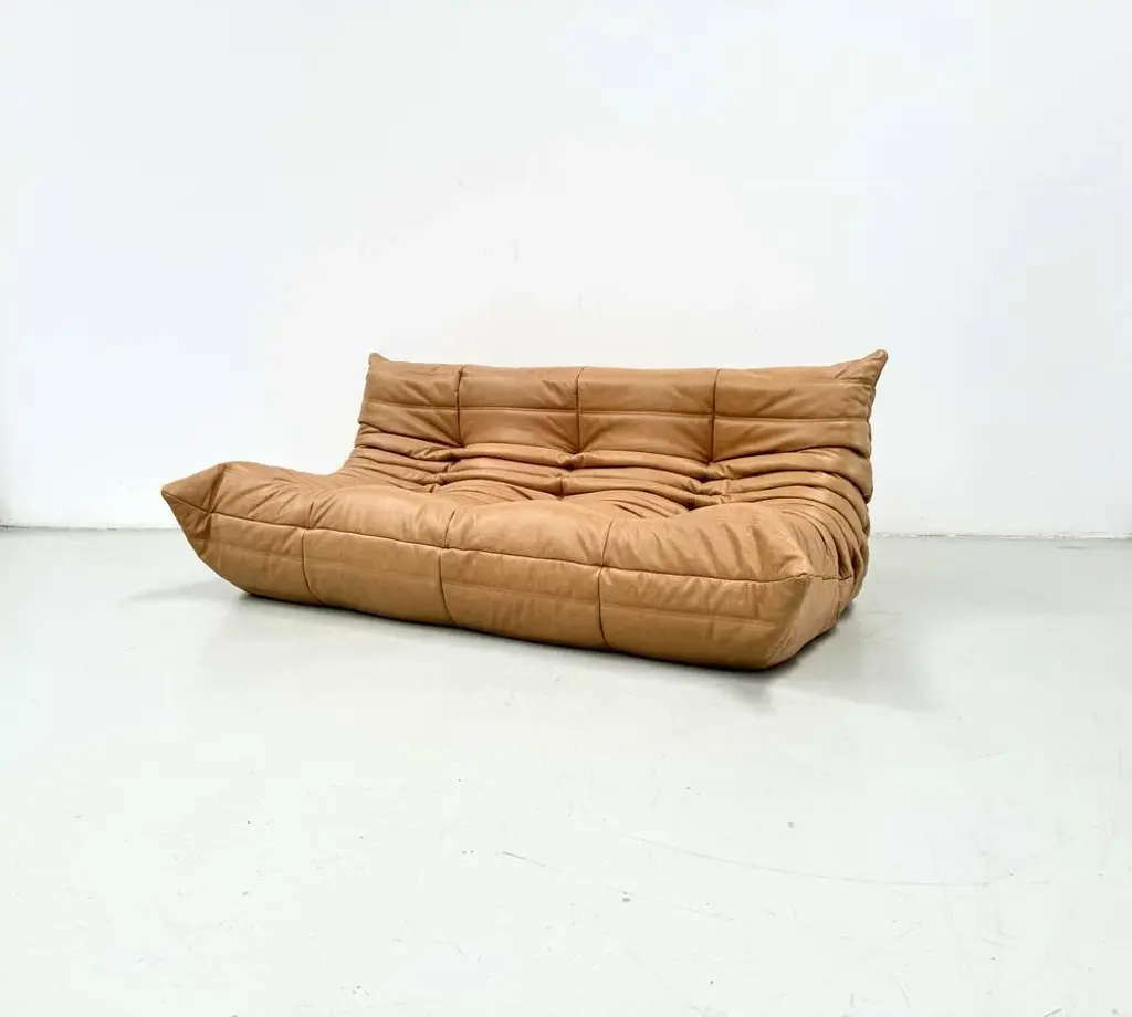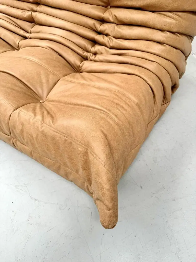 French 3-Seater Togo Sofa In Camel Leather Attributed To Michel Ducaroy For Ligne Roset