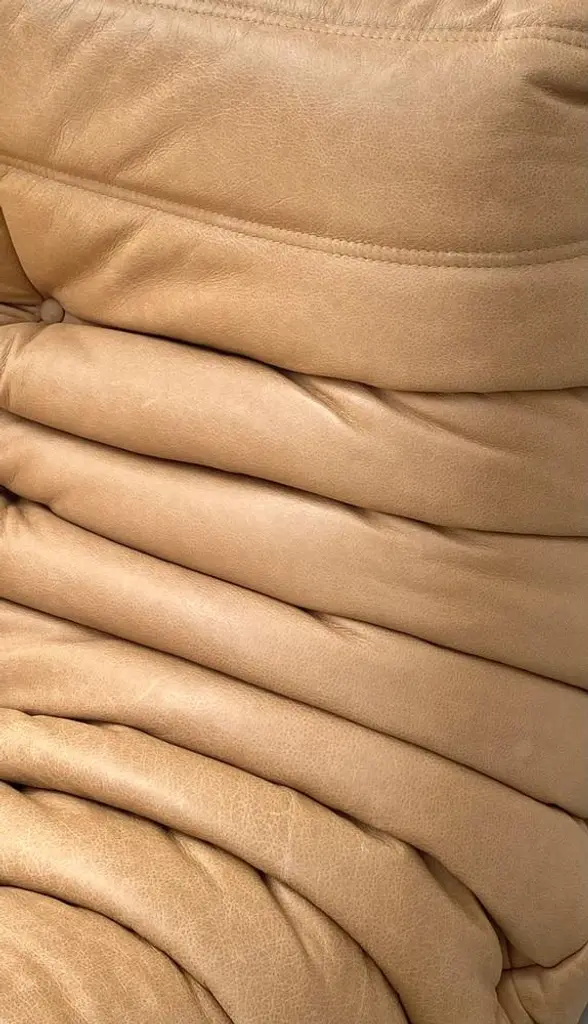 This Togo has been reupholstered with new foam and leather, preserving its shape & iconic looks.The bottom could show some signs of use. The reupholstery fabric is not the original LR material. Furthermore, on agreement with LR the label is not reaffixed. This piece is attributed to the mentioned designer/maker. It has no attribution mark and no official proof of authenticity, however it is well documented in design history. I take full responsibility for any authenticity issues arising from misattribution