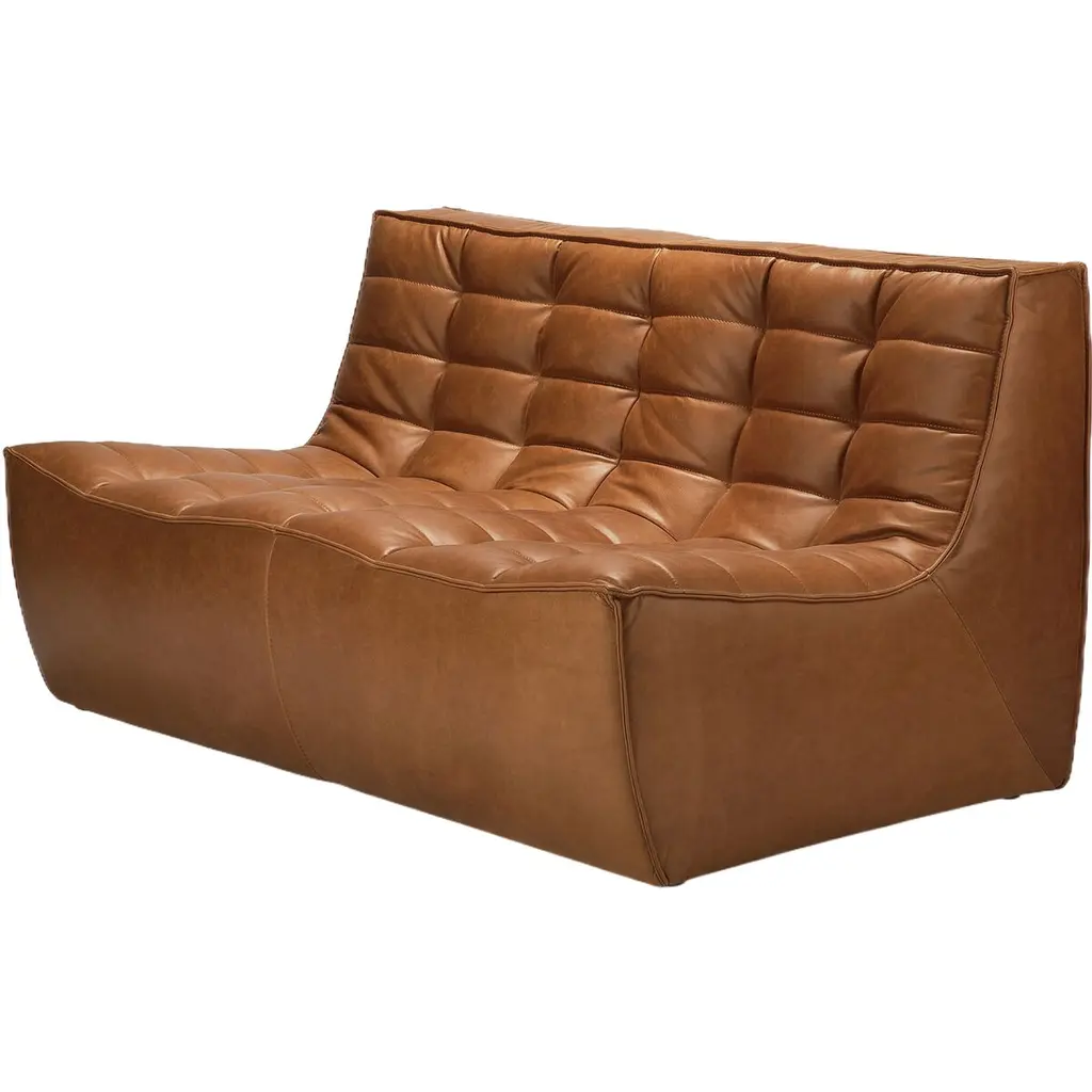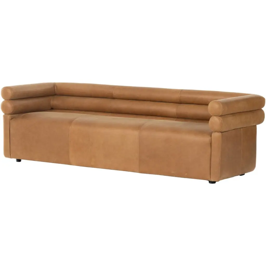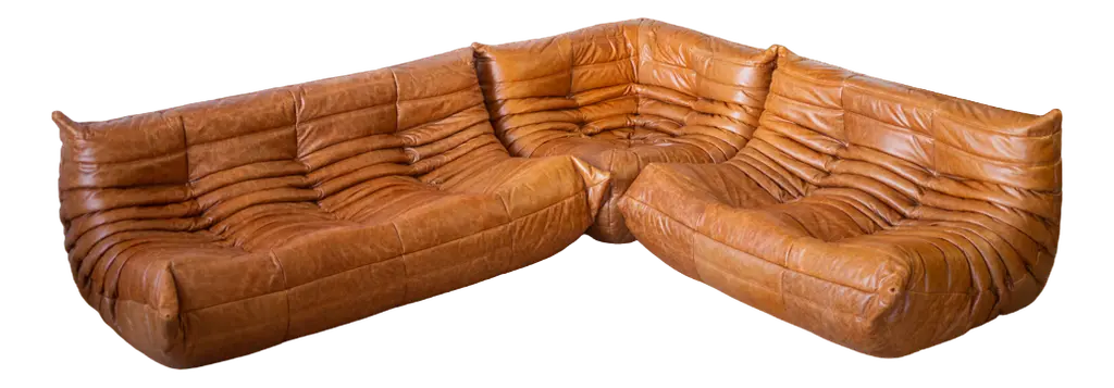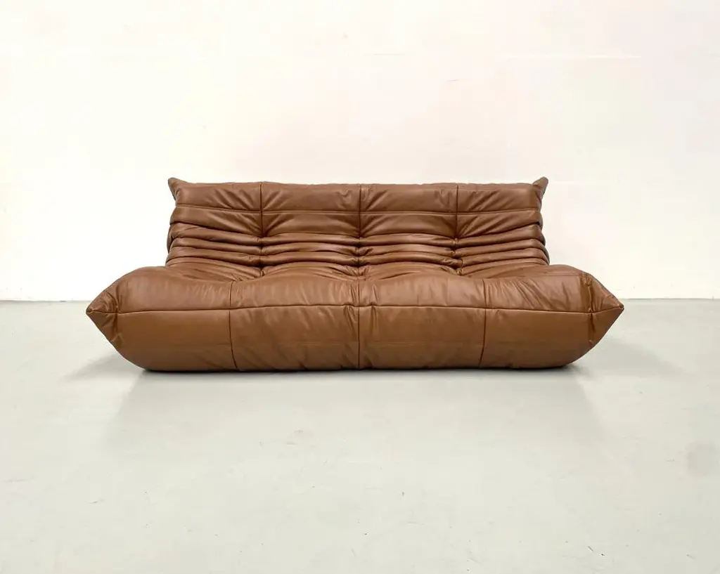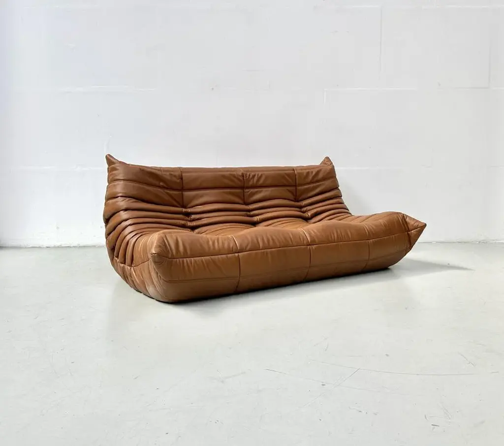 French Togo Sofa In Dark Cognac Leather Attributed To Michel Ducaroy For Ligne Roset
