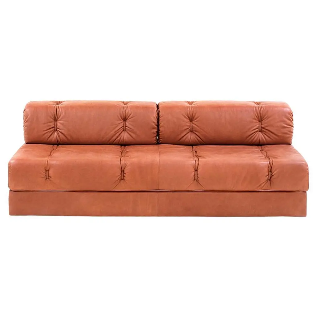 This Togo has been reupholstered with parts of new foam and leather, preserving its shape & iconic looks.The bottom could show some signs of use. The reupholstery fabric is not the original LR material. Furthermore, on agreement with LR the label is not reaffixed. This piece is attributed to the mentioned designer/maker. It has no attribution mark and no official proof of authenticity, however it is well documented in design history. I take full responsibility for any authenticity issues arising from misattribution