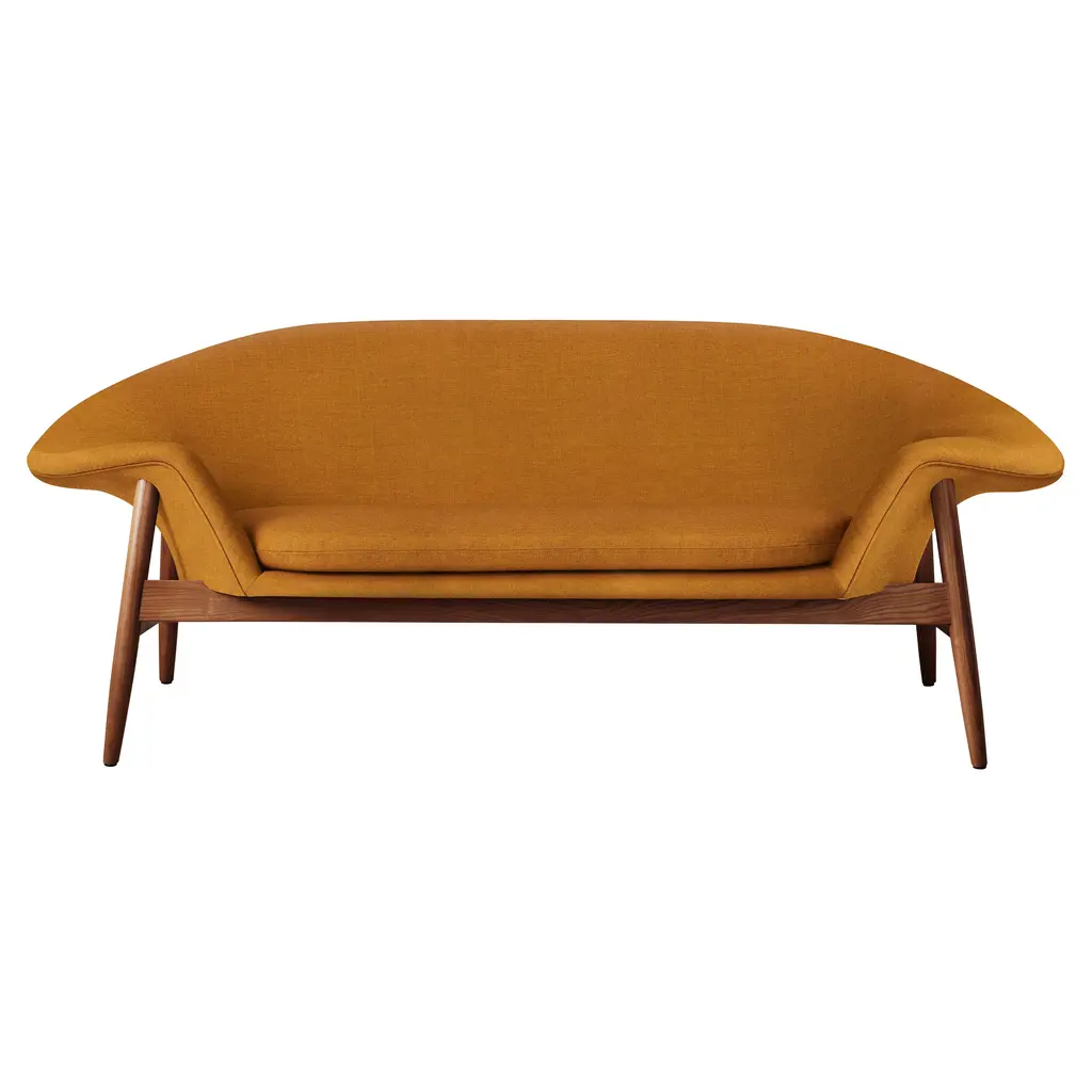 The Fried Egg Sofa has its roots in Danish modernism of the ‘50s, metamorphosed in a current collaboration between architect Hans Olsen's descendants and Warm Nordic. Adapted from the design icon’s original asymmetrical armchair with notably flat armrests, the sofa extends those playful lines, set on an oiled solid-teak frame.