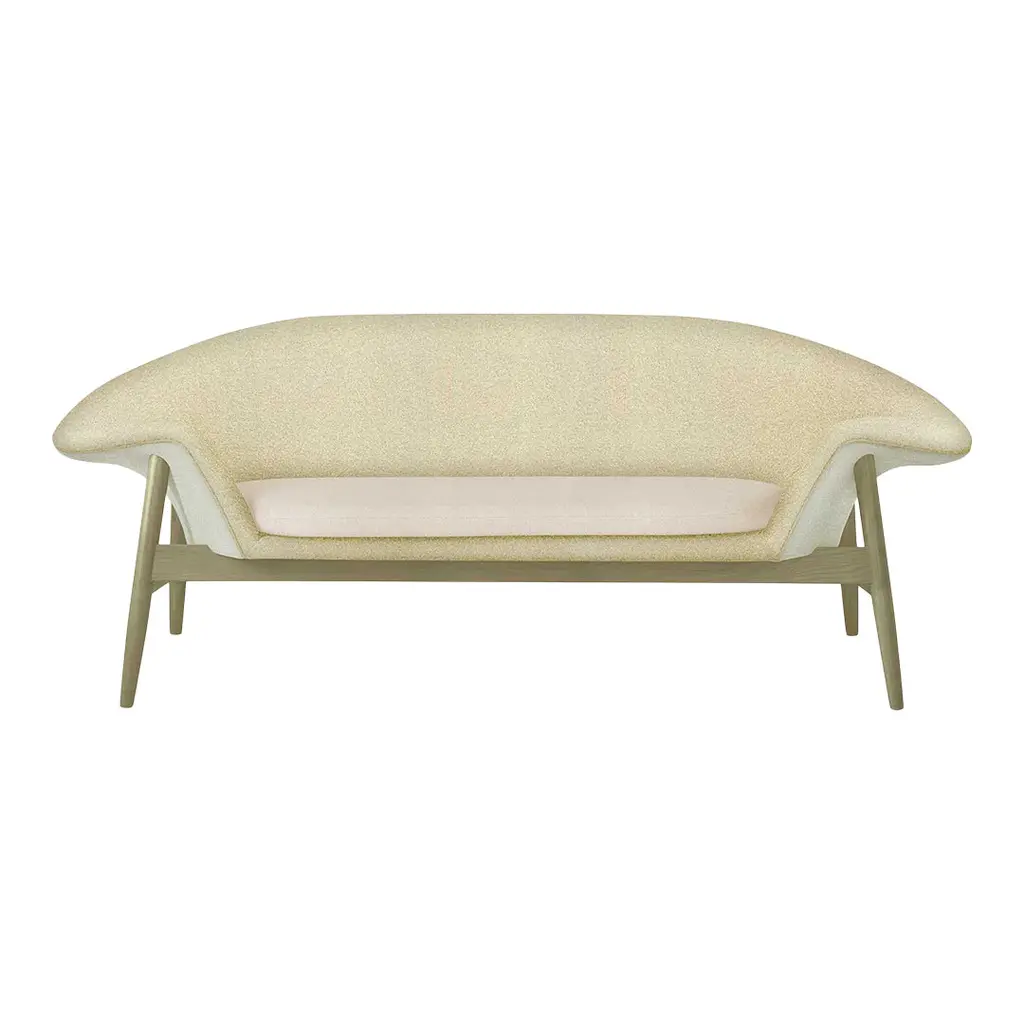 Hans Olsen's unique Fried Egg design now occupies the living room in new dimensions in the form of an exclusive sofa with playful lines. The renowned Danish architect experimented with original design furniture, and the perfectly shaped Fried Egg sofa with the striking armrests is launched in close collaboration between Hans Olsen's descendants and Warm Nordic based on a desire to continue iconic Nordic design. The Fried Egg design has its roots in Danish modernism of the 50s and caters to design lovers who want to add edge to the home in the form of extraordinary design furniture with personality. The sofa shares a design language with the asymmetrical armchair with the nickname Spejlaegget, but unites the playful lines in a friendly and well-balanced design, where the two flat armrests open to the world and invite you to lounge on the sofa.