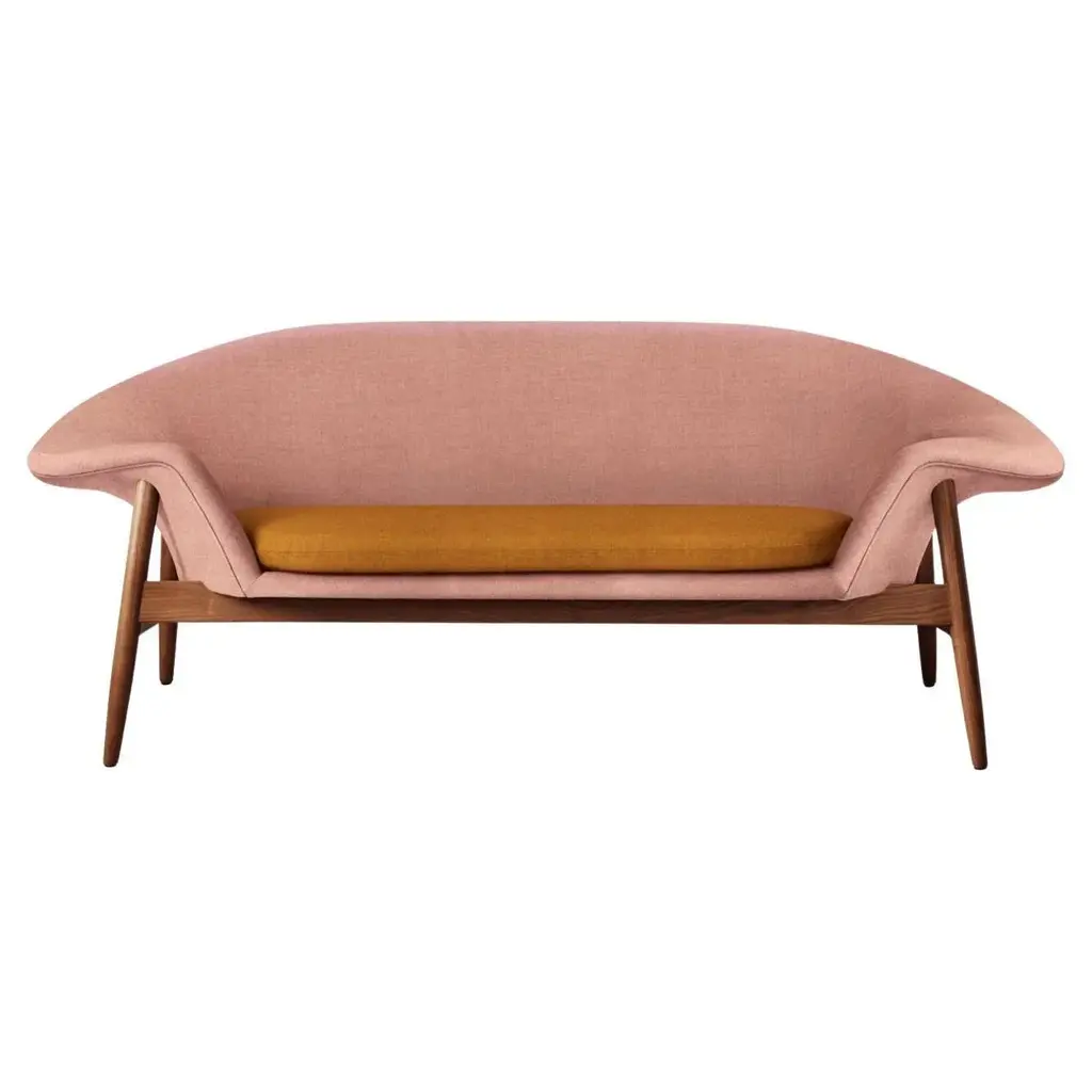 Fried egg sofa pale rose dark ochre green by Warm Nordic Dimensions: D186 x W68 x H 68 cm. Material: textile upholstery, solid oiled teak. Weight: 42 kg Also available in different colours and finishes. Warm Nordic is an ambitious design brand anchored in Nordic design history and with a timeless, aesthetic style that inspires you to appreciate the little things in life. The company is the result of several years’ intense work on developing a new design brand with design history, quality and personality at its core. Warm Nordic boasts a colourful and charming universe of furniture, lamps and accessories full of personality. Our designs encapsulate the Nordic spirit, which in its essence is timeless, inclusive and warm.
