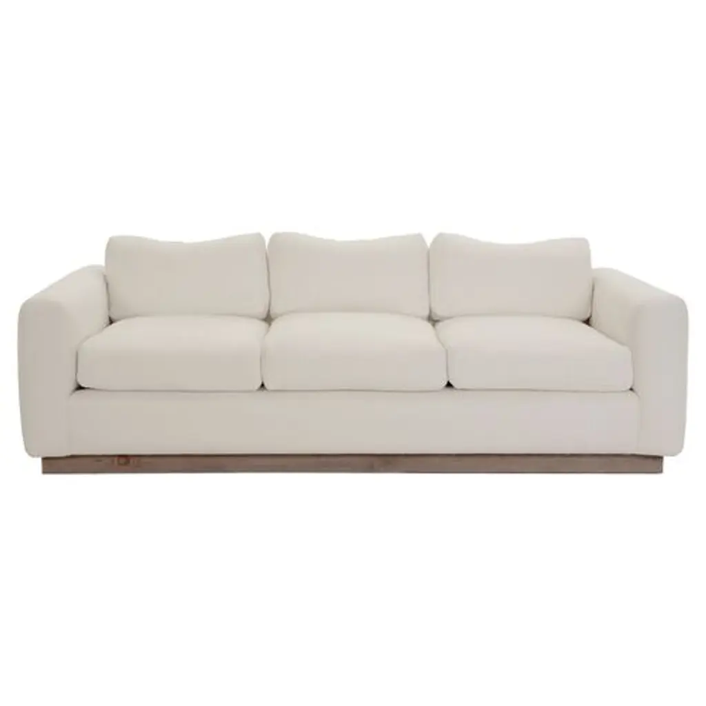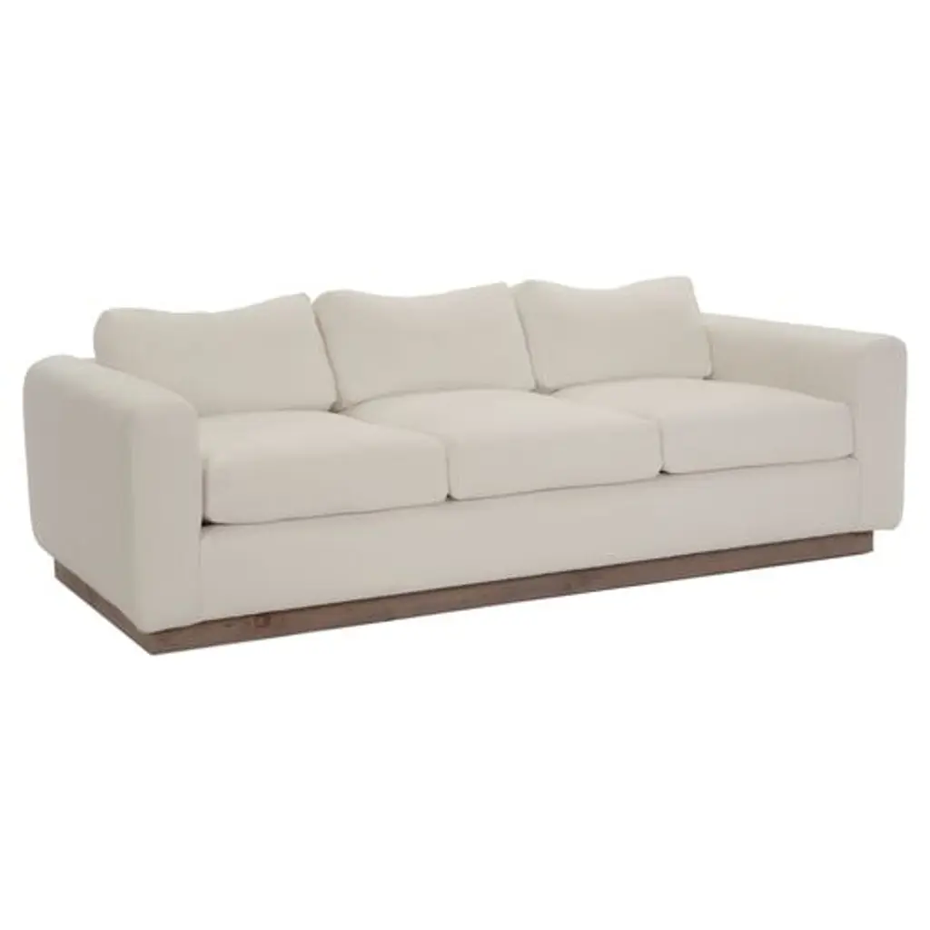 This luxe linen sofa blends seamlessly with any style of decor, thanks to its neutral-hued, washed linen upholstery and recessed base made of reclaimed alder. A plush down-and-feather fill welcomes guests with outstanding comfort and support. Because this item is made using natural or reclaimed materials, each piece is unique and may vary slightly from the image shown.
