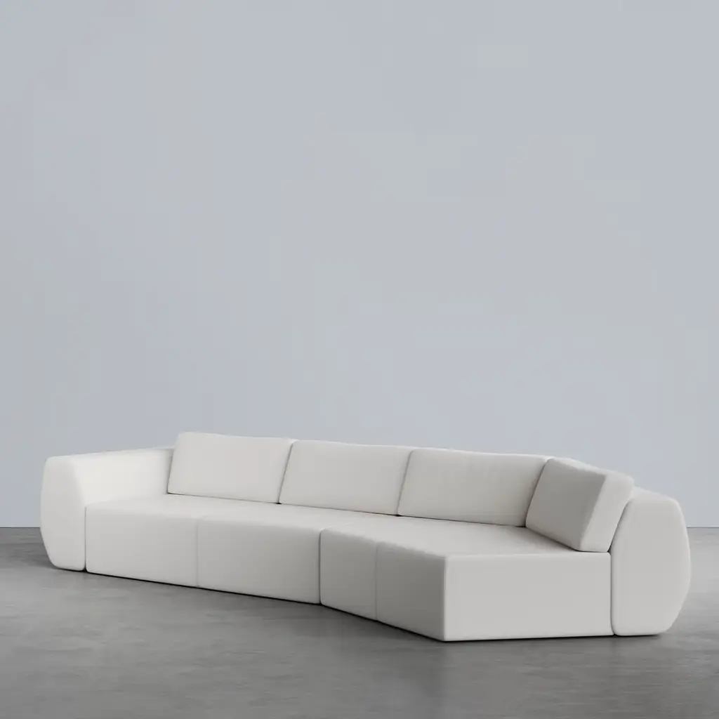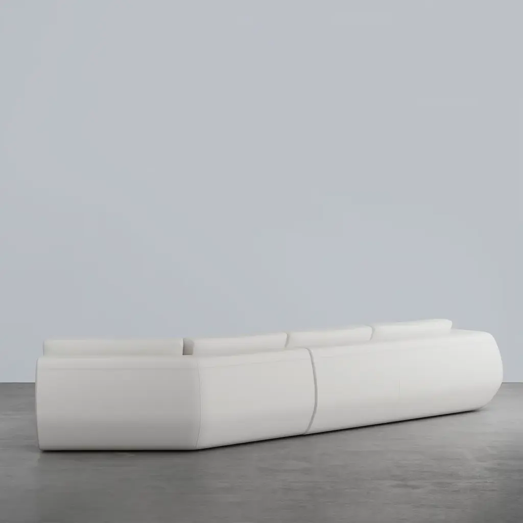 Futura, designed by Artefatto Design Studio, is a modular sofa series that can be assembled into distinctive shapes. It features an expansive back that seamlessly connects each piece, creating intriguing angles. The Futura Sofa is upholstered in Special Leather Soul White, offering a sleek and luxurious finish. It invites creativity in any space while providing exceptional comfort.
